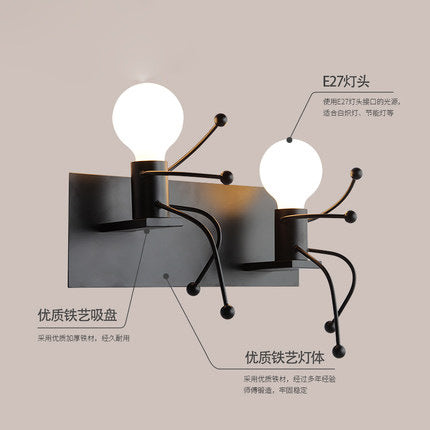 Nordic style cute iron man creative wall lamp personalized aisle lamp bedroom children's room bedside small wall lamp mirror headlamp