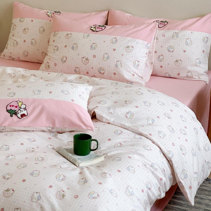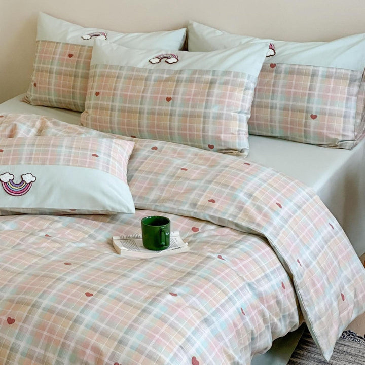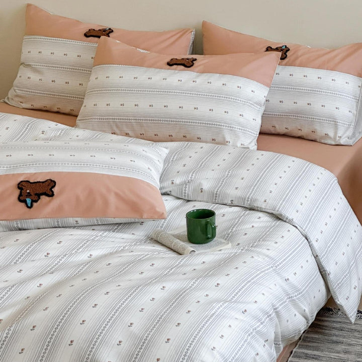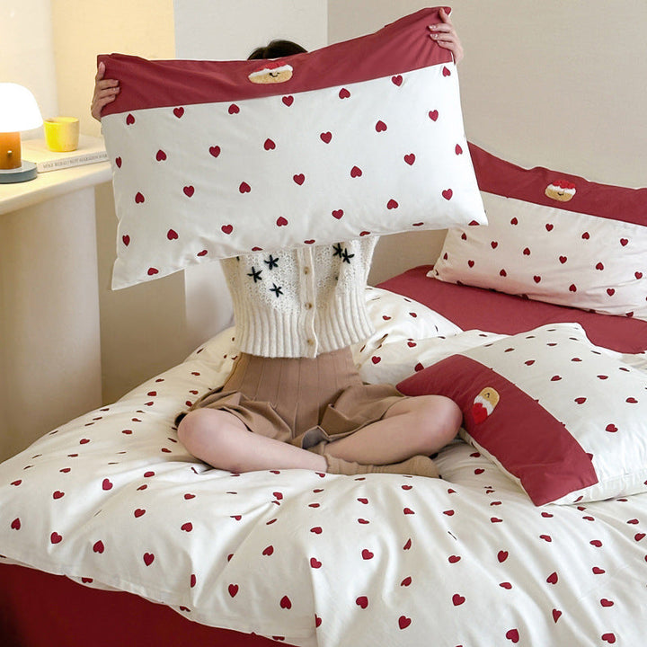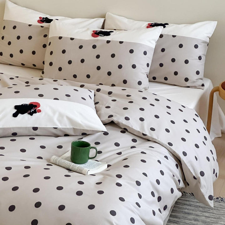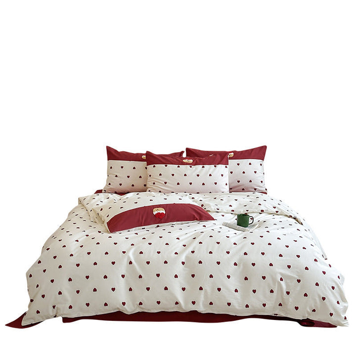Nordic style pure cotton embroidery four-piece set of bedding cute polka dot three-piece set of bedding wholesale