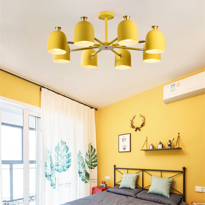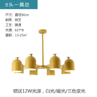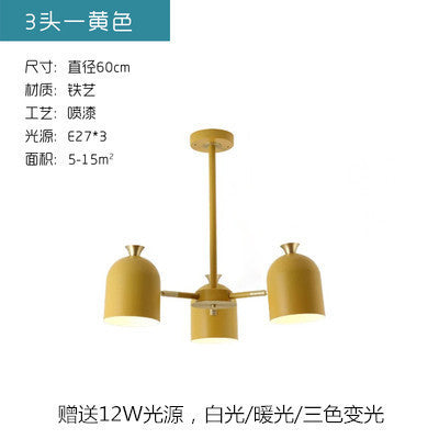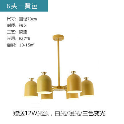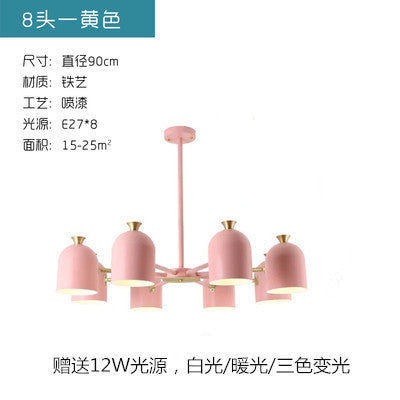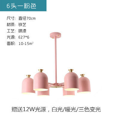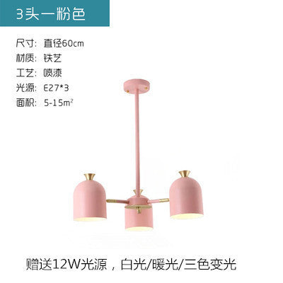 Nordic style wrought iron macaron chandelier, living room, bedroom, children's room, pink lamps, personalized creativity, simple and modern