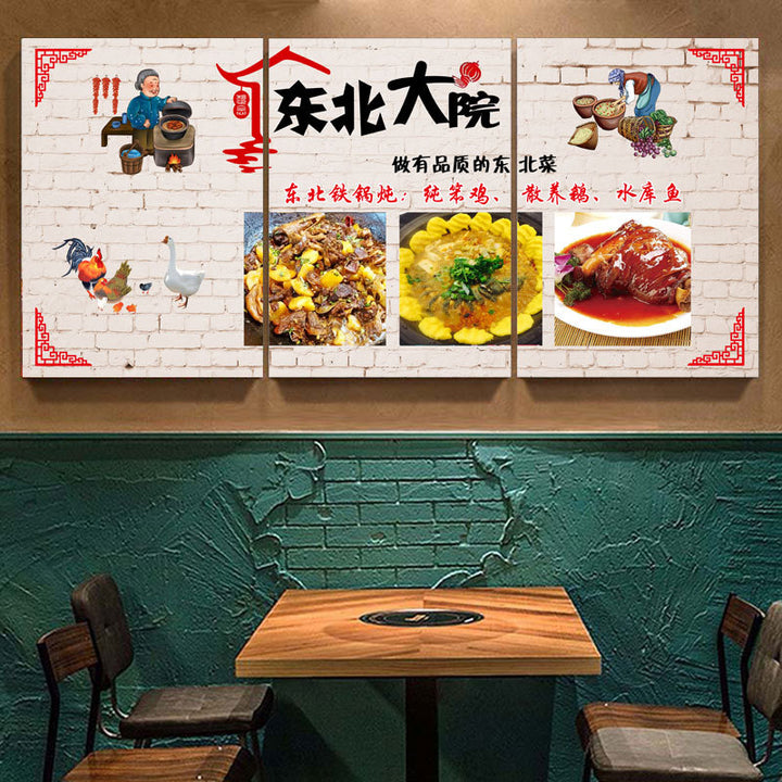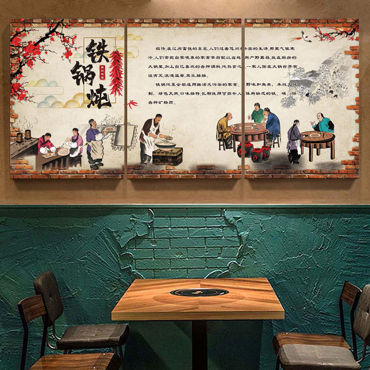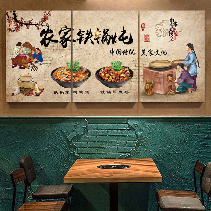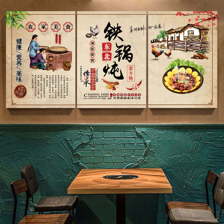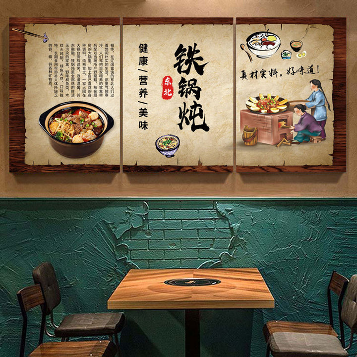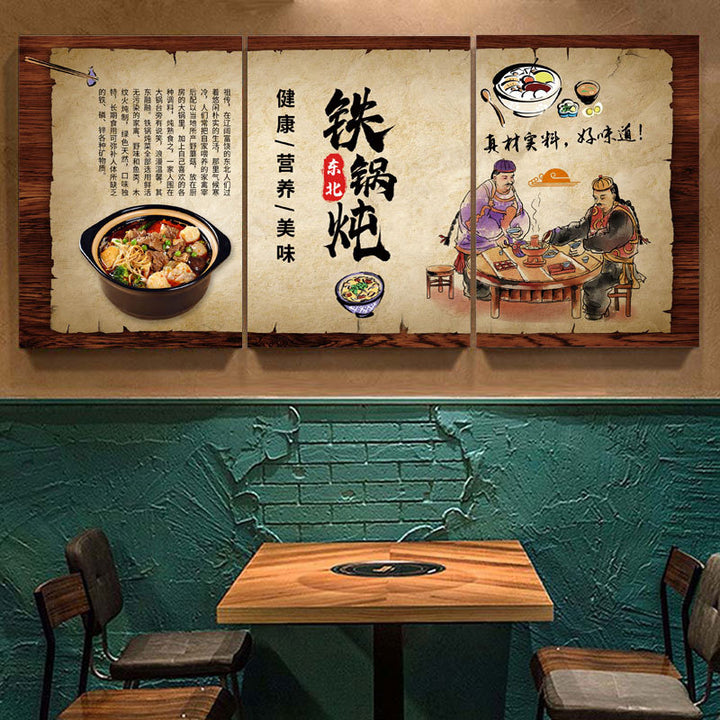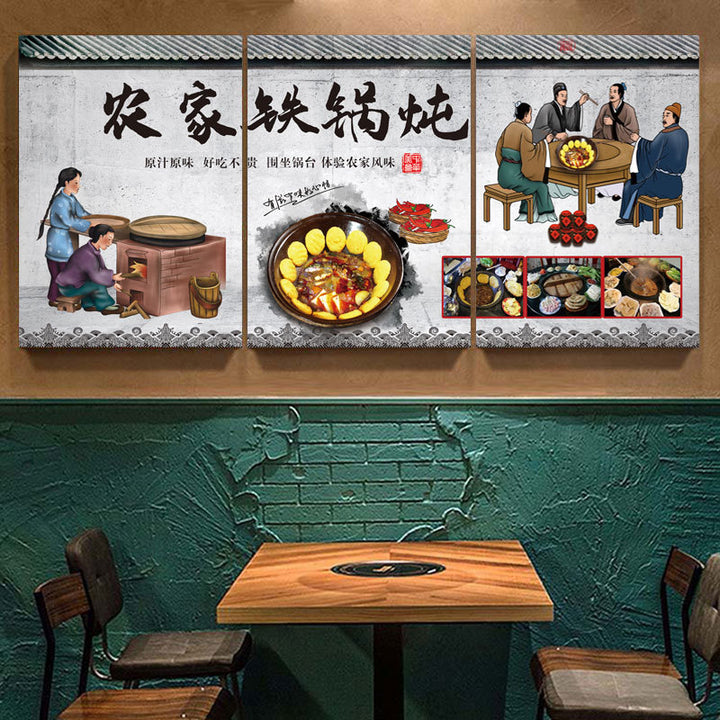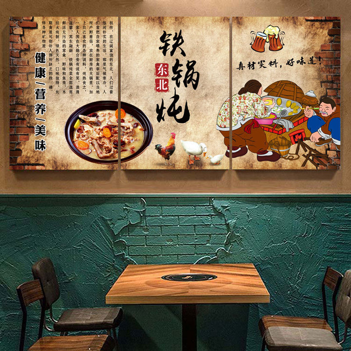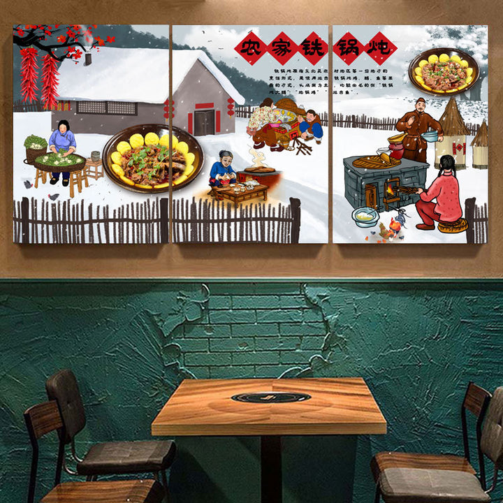 Northeast Hotel wall decoration painting rural folk style catering restaurant wall mural stove iron pot stew hanging painting