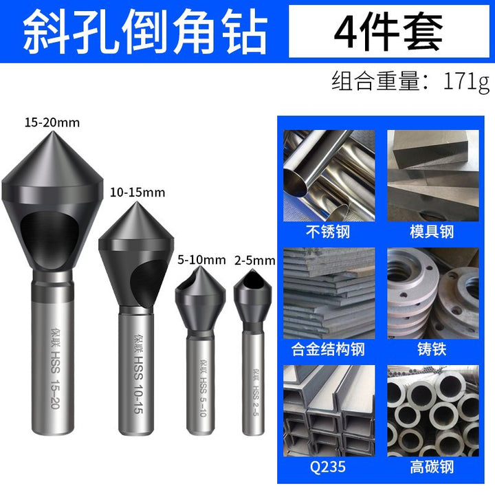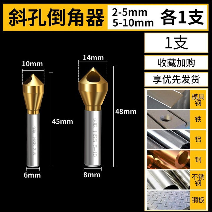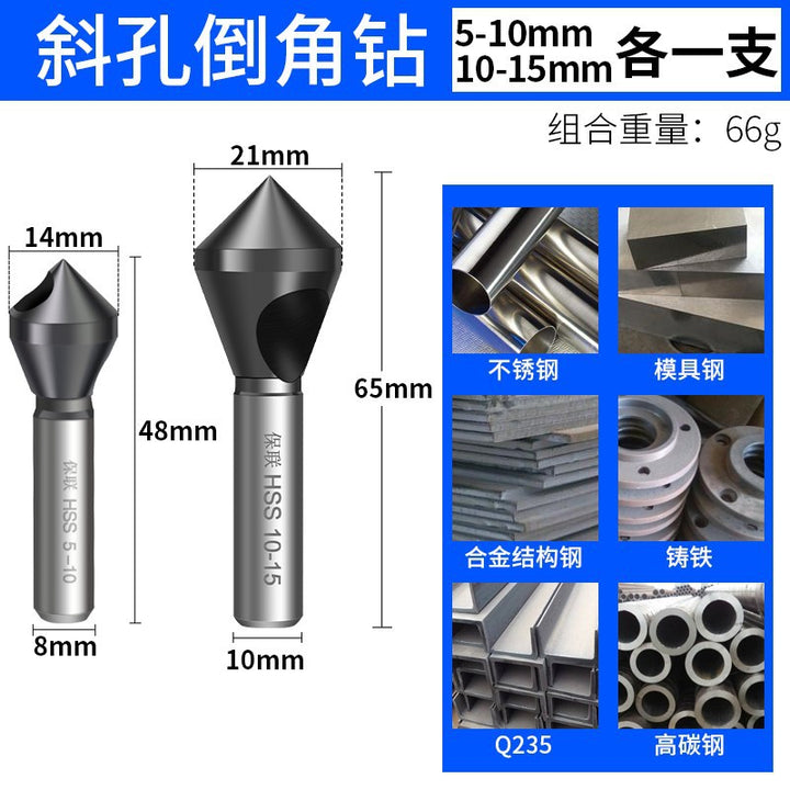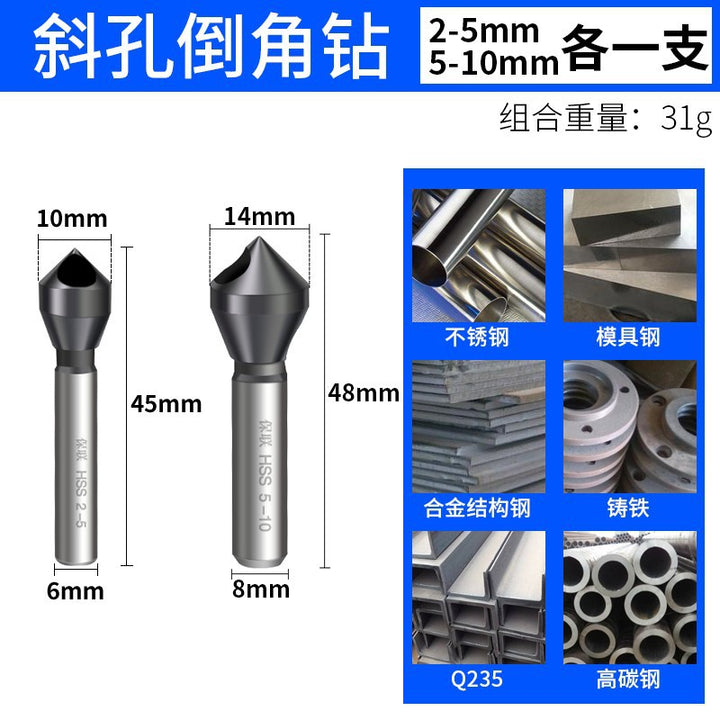 Oblique hole 90 degree chamfer Inverted taper hole Screw countersunk hole Chamfering knife Chip removal Deburring reaming Inner chamfering drill