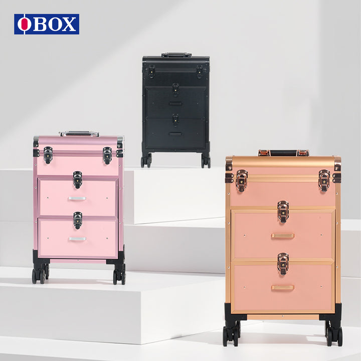 OBOX hot-selling trolley cosmetic case double-layer partition design portable roller suitcase studio crew specialization