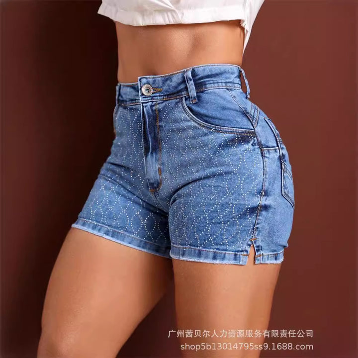 ODF3361 European and American 2024 women's tight denim shorts full of hot diamonds