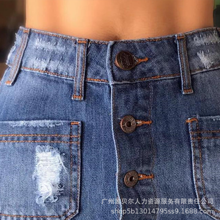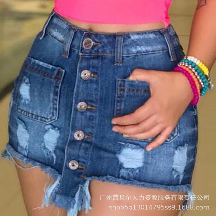 ODF3406 European and American women's clothing new single-breasted pocket splicing hole tight...