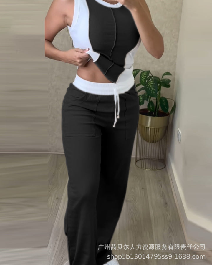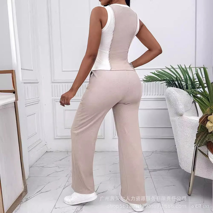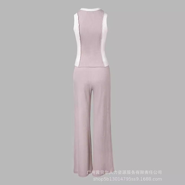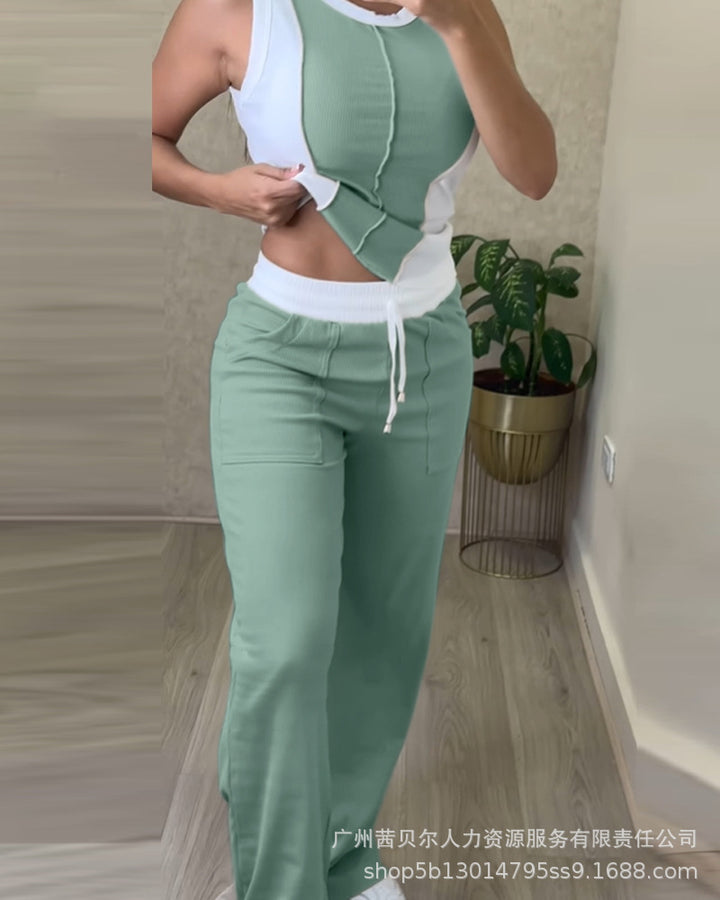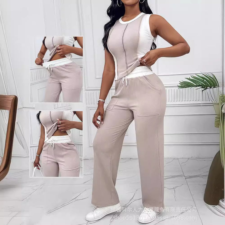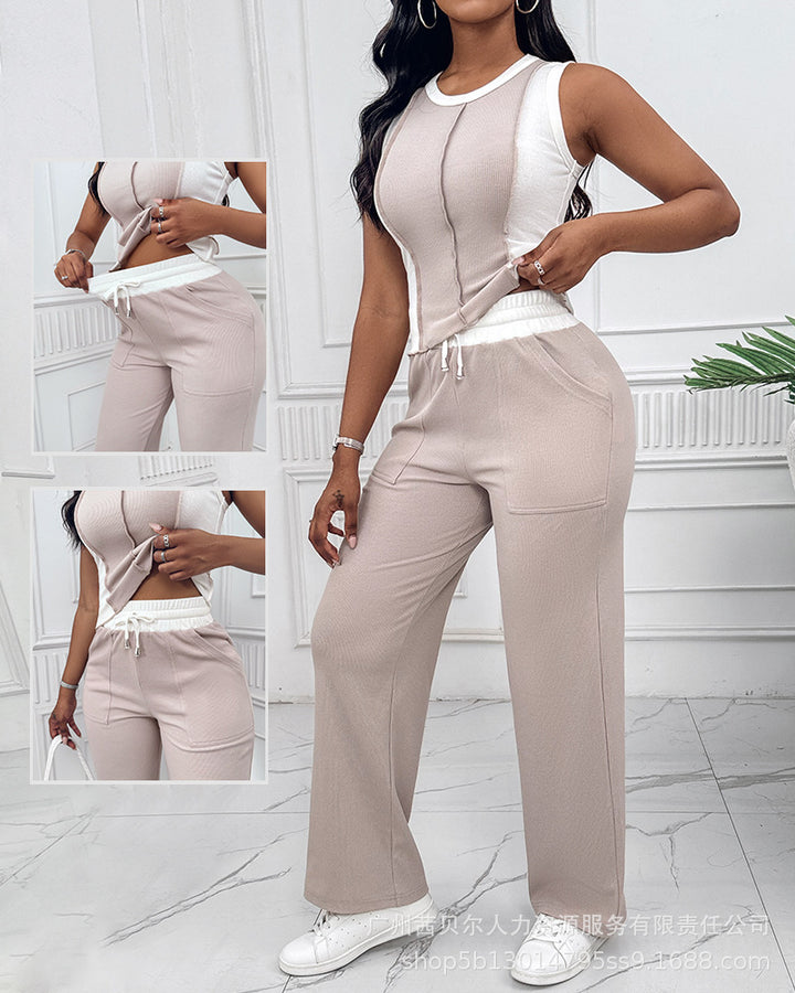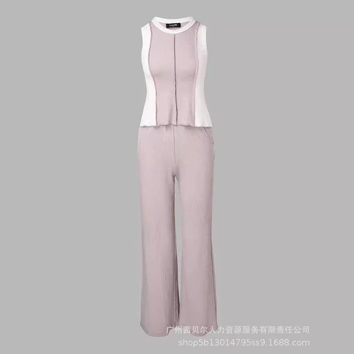 ODF4124 European and American contrasting color splicing pit strip commuter and leisure set 2-piece set