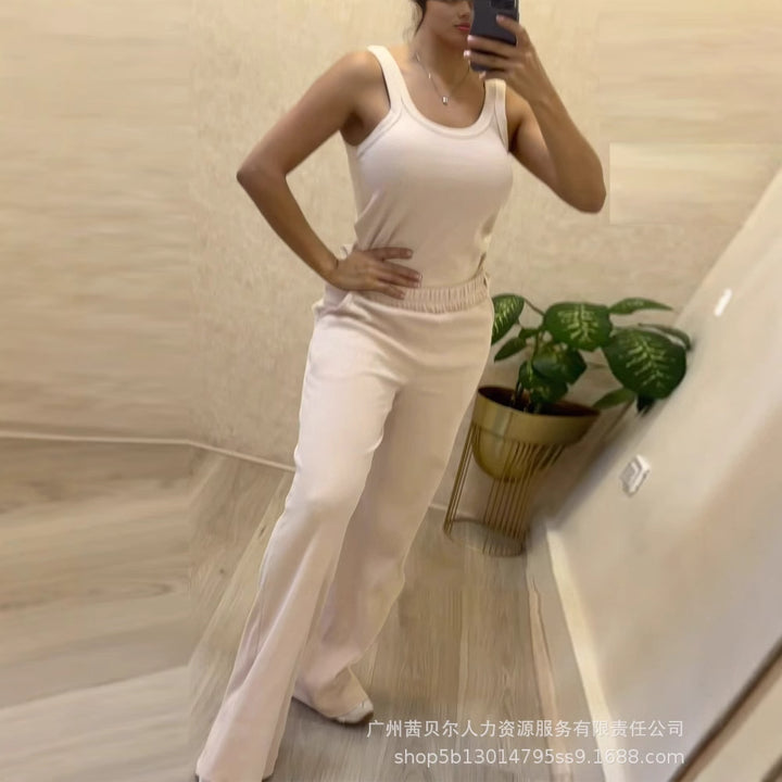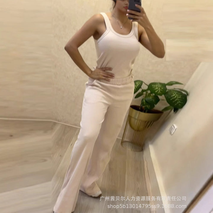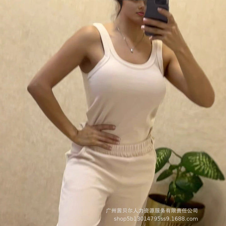 ODF4155 new solid color pit strip sleeveless commuter and leisure set 2-piece set