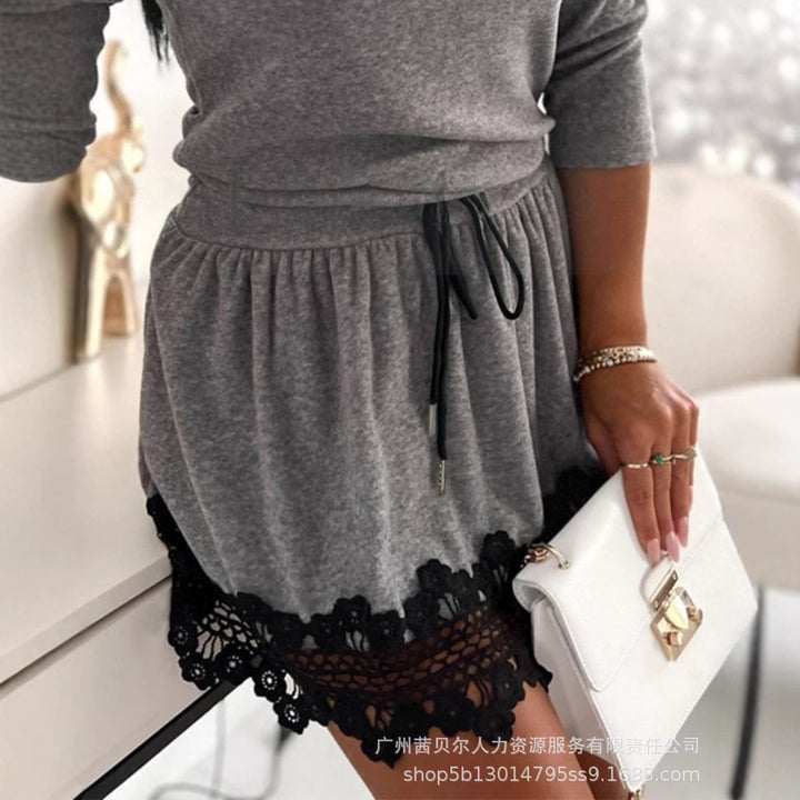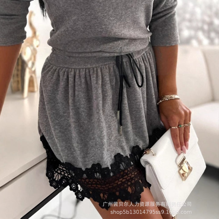 ODF4280 on the new European and American contrasting lace splicing waist drawstring casual dress