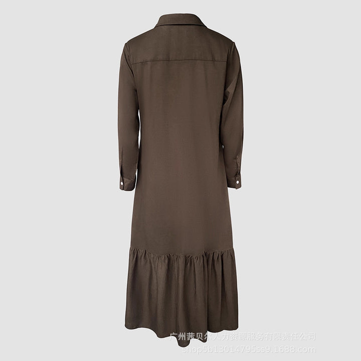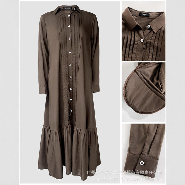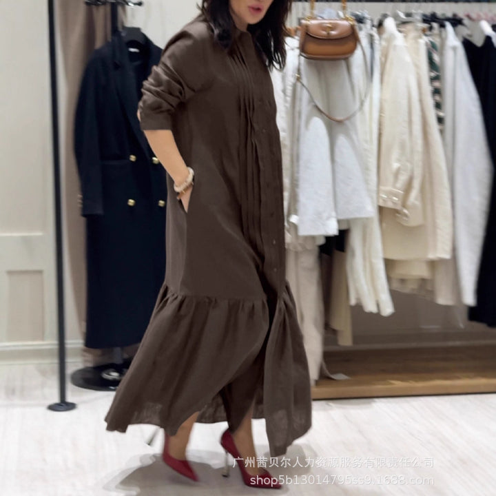 ODF4511 Cross-border European and American solid color linen pleated splicing ruffle hem commuter casual dress