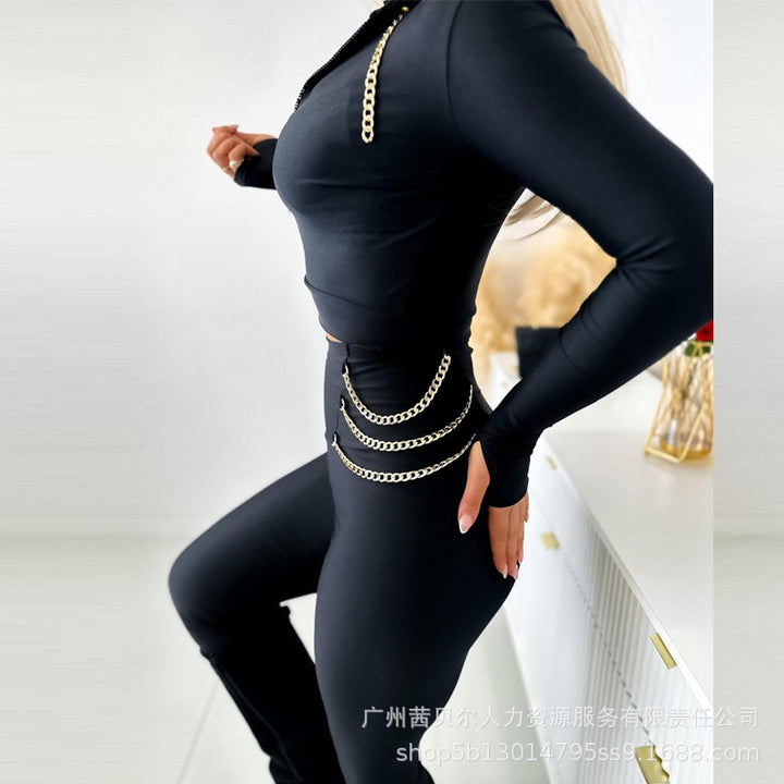 ODL199 New 2024 Chain Splicing Tights + Tights Pants Set 2-piece Set