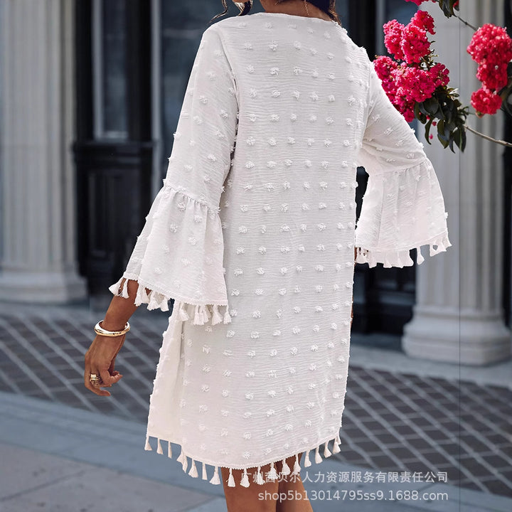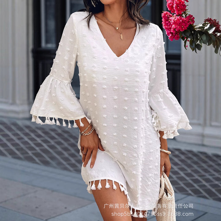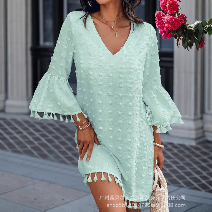 ODS3440E series new women's clothing European and American polka dot cut flower V-neck lotus leaf sleeve casual dress