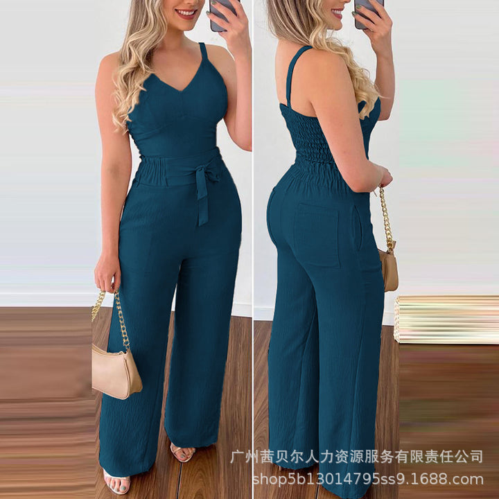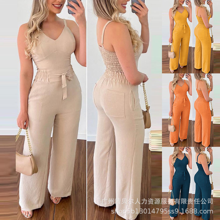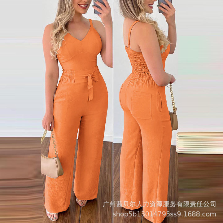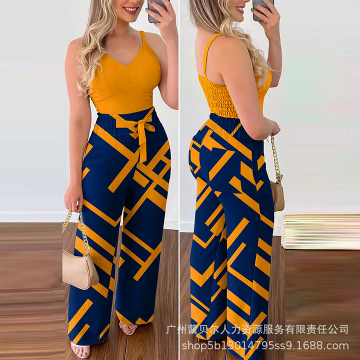 (ODS3515 series) 2023 European and American women's clothing lake sling vest + straight pants casual suit