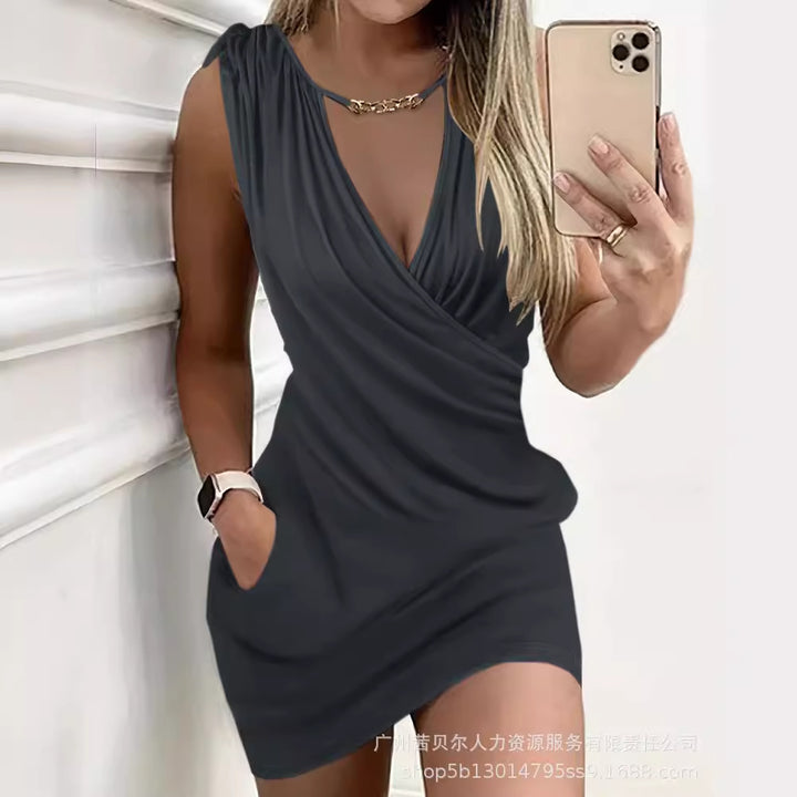 ODS3705Y European and American new summer vest button insert bag pit strip tight casual skirt