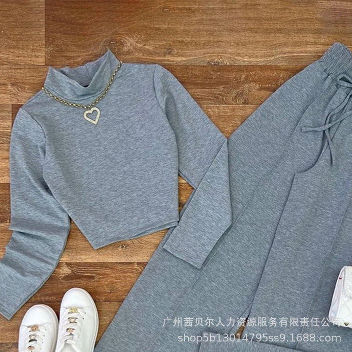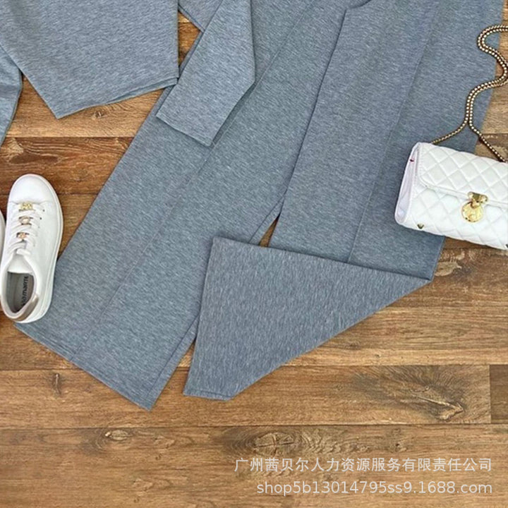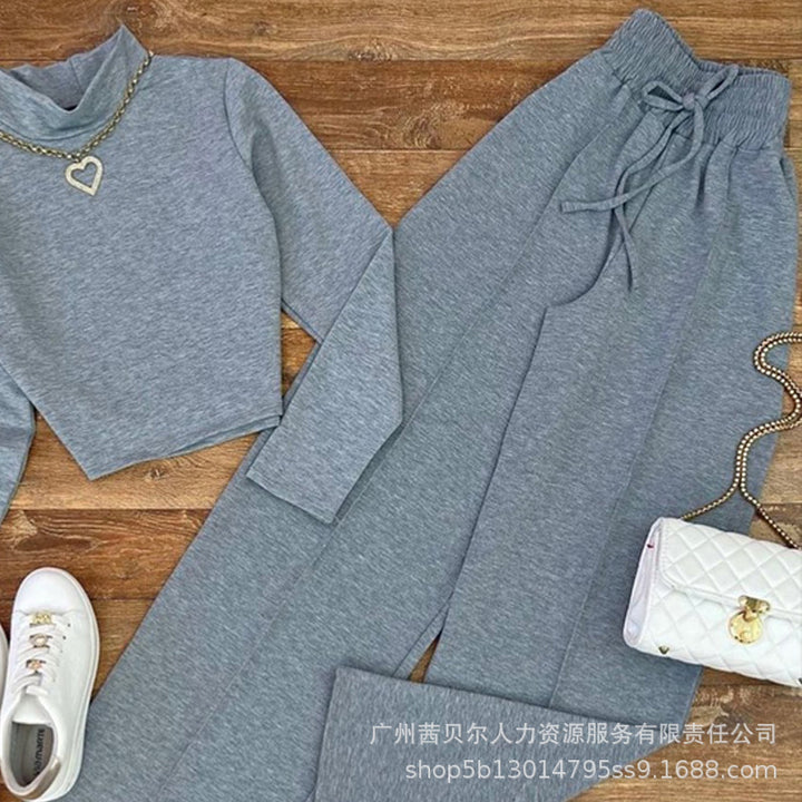 ODS5363 Spot Women's New Long Sleeve Solid Color Top + Elastic Waist Pants Set 2 Sets