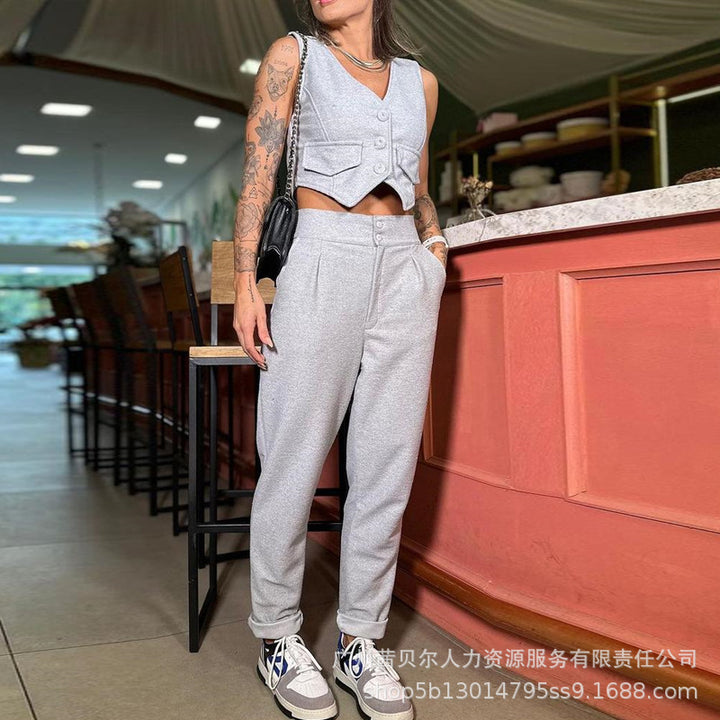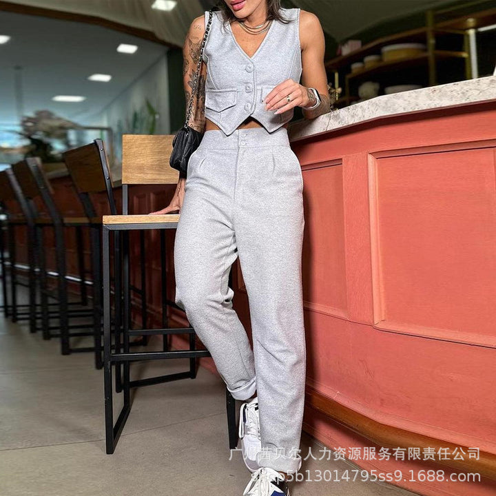 ODT99278 New 2024 Europe and America, women's solid color casual pants set 2-piece set