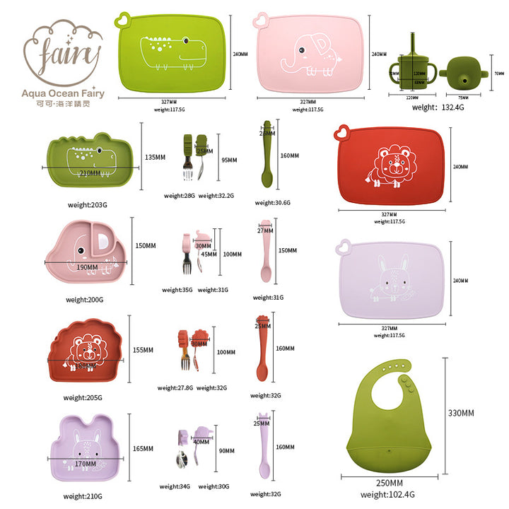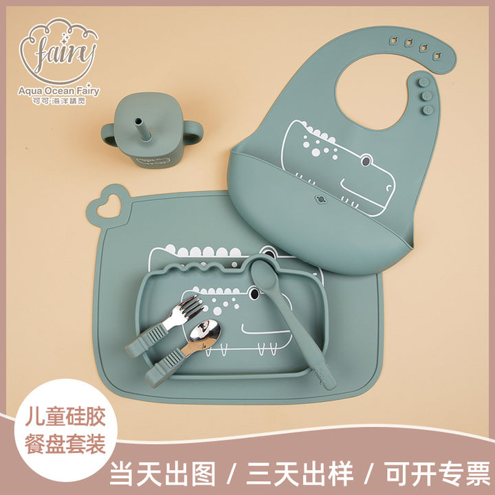 OEM custom silicone dinner plate baby bib children's meal mat spoon fork anti-drop snacks sil...