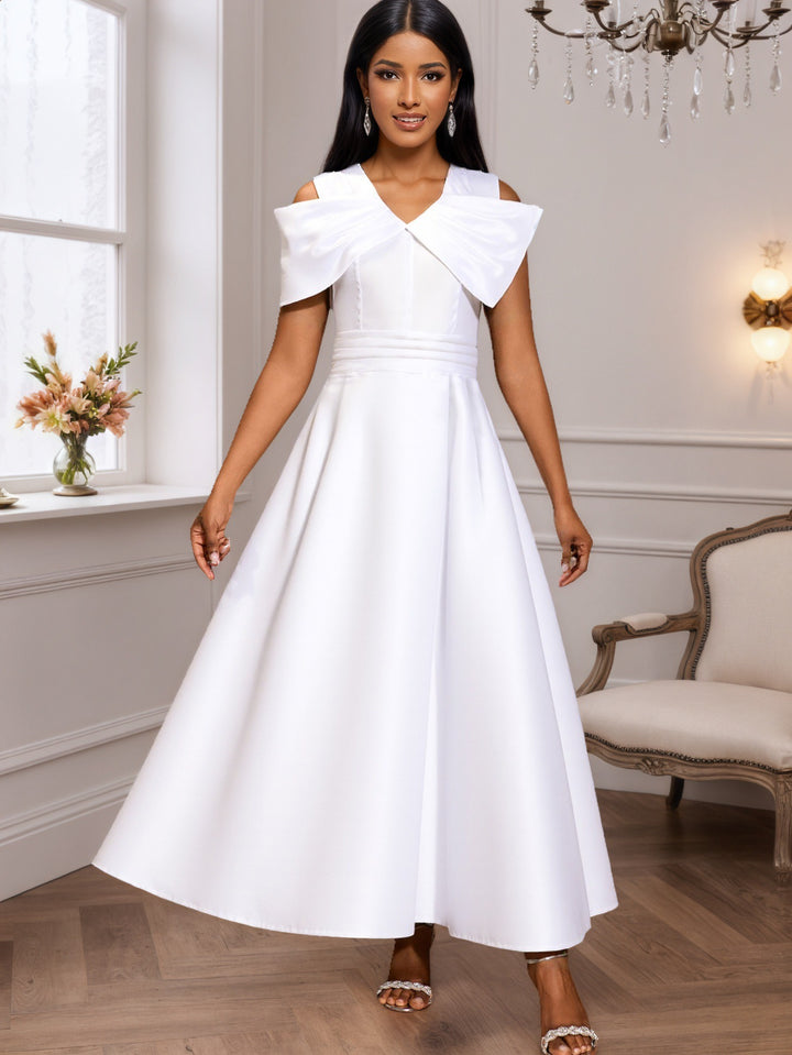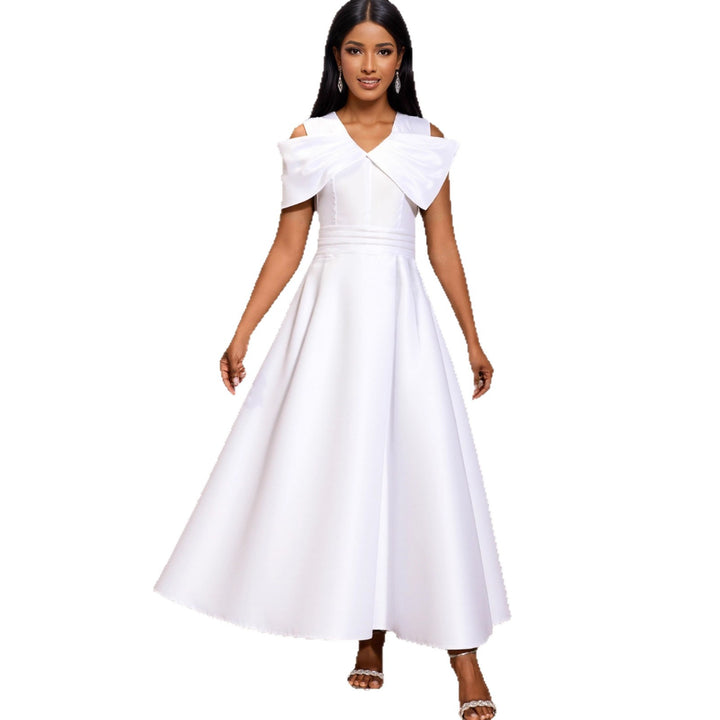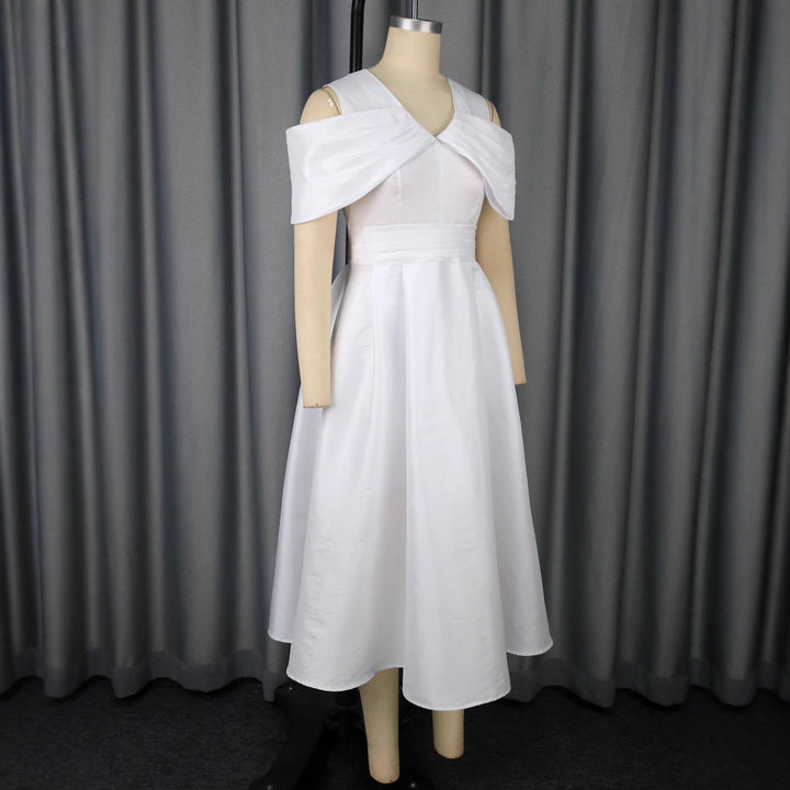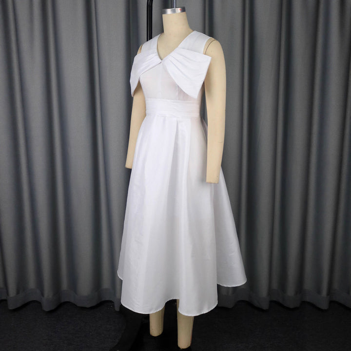 Off-the-shoulder V-neck irregular bow bridesmaid dress, waist and thin A pendulum party dress Party dress