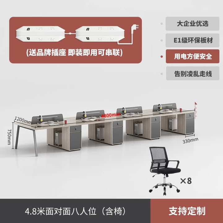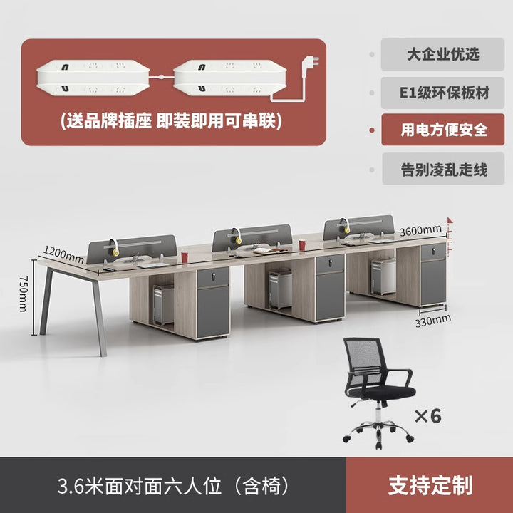 Office table and chair combination table staff desk simple steel frame 6 4 people 6 four pair...