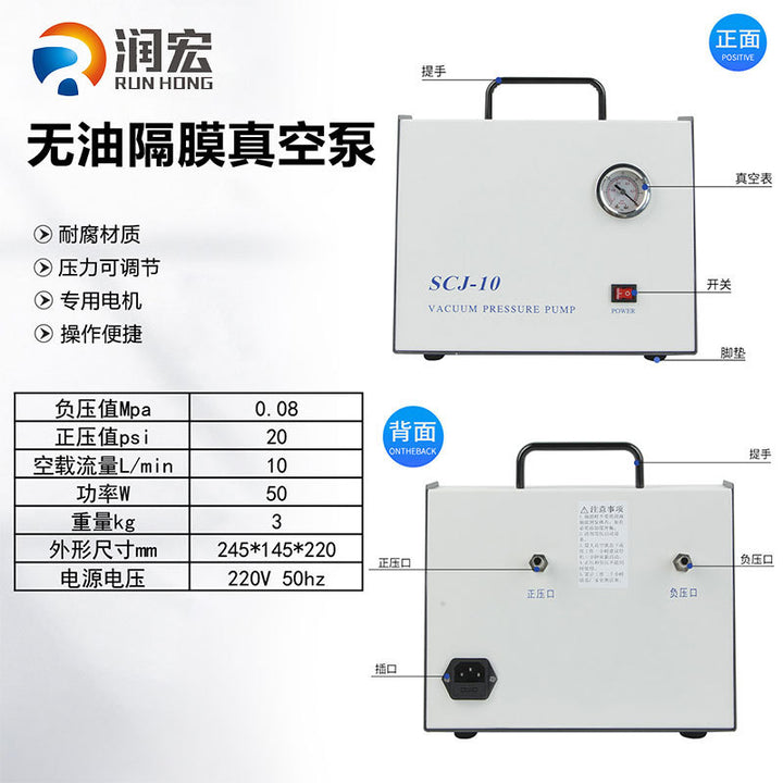 Oil-free diaphragm vacuum pump Small air extraction and filtration pump Adjustable positive a...