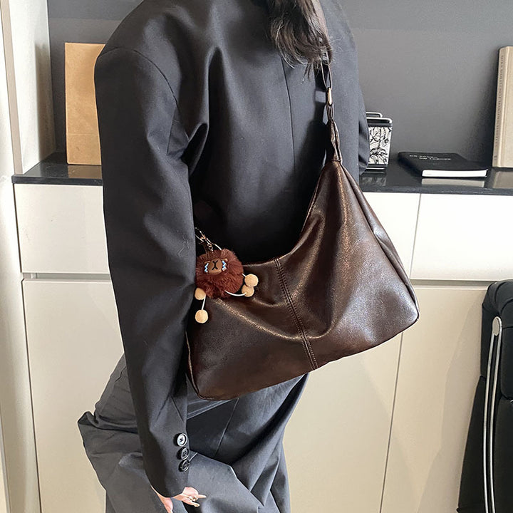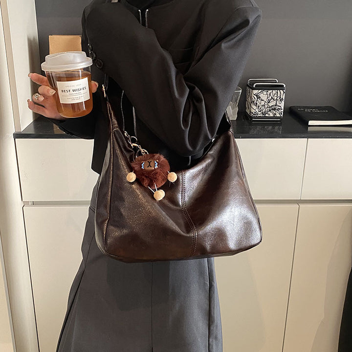 Oil wax leather big bag women's 2025 new trendy winter retro versatile tote bag fashion casual shoulder messenger bag