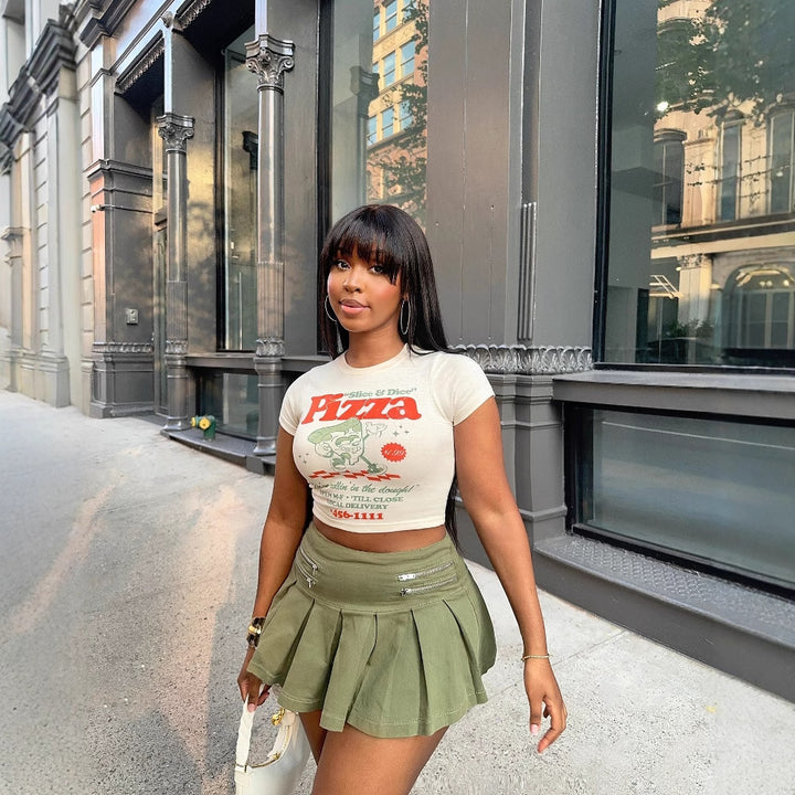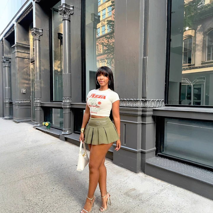 OL6171 supply new fashion women's clothing vacation zipper pleated mini skirt short skirt spot