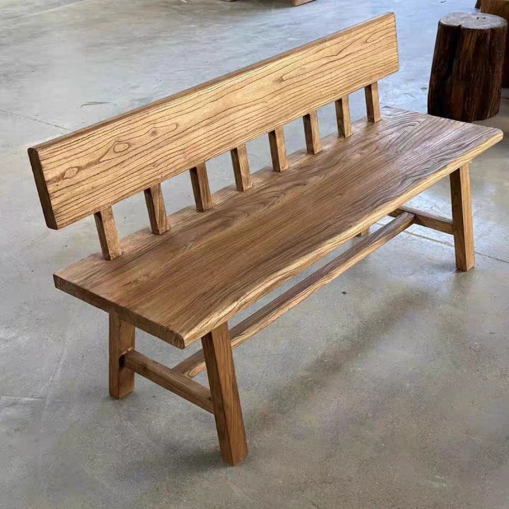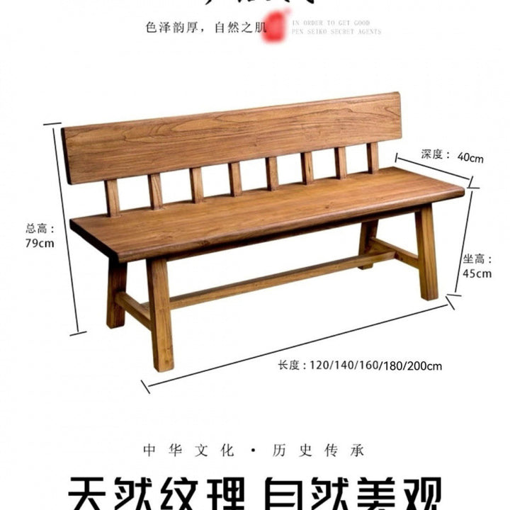 Old elm solid wood rectangular back chair full package court chair outdoor bench courtyard table chair chair cp