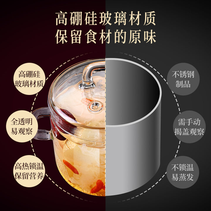 One person bird's nest stew cup, water-proof slow stew soup stew pot, stew soup cup with lid, high temperature resistant glass stew bird's nest sub...