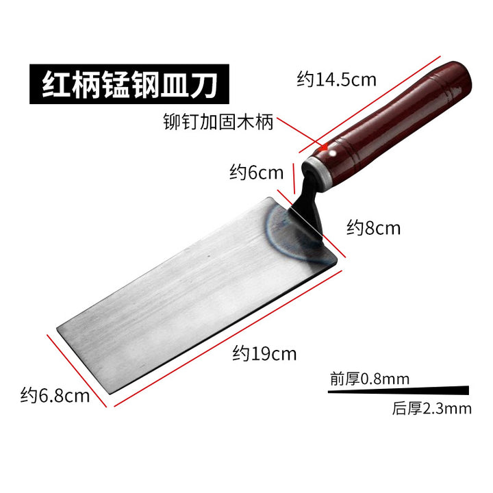Red handle square corner knife, Red handle manganese steel dish knife, Rivet cutter, Wooden handle small manganese steel dish knife, Wooden handle large manganese steel dish knife |
