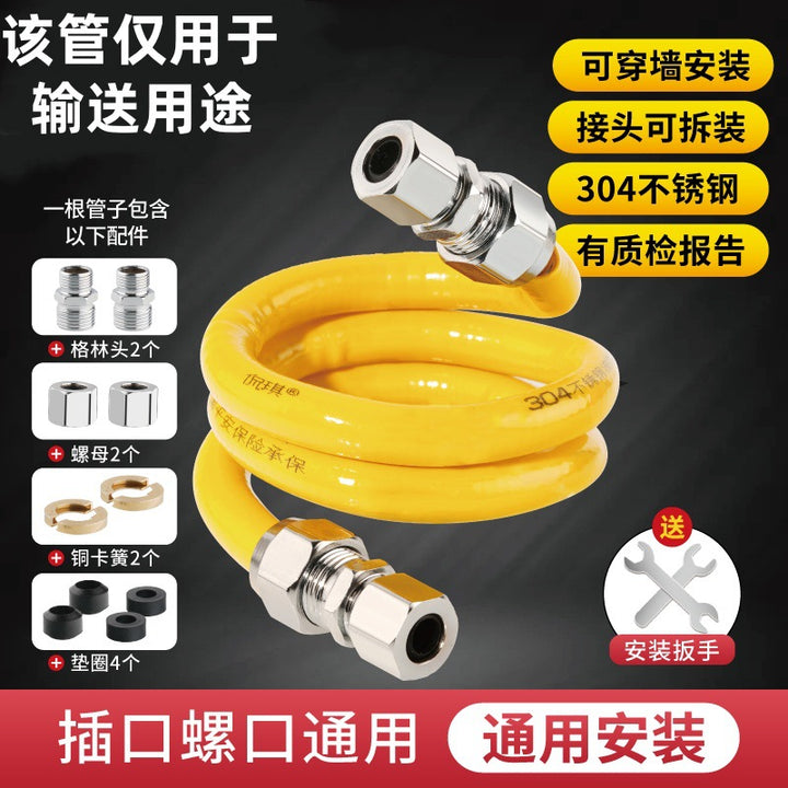 One piece of 304 stainless steel gas pipe 3 points can be disassembled through the wall natural gas pipe corrugated gold one piece of hair