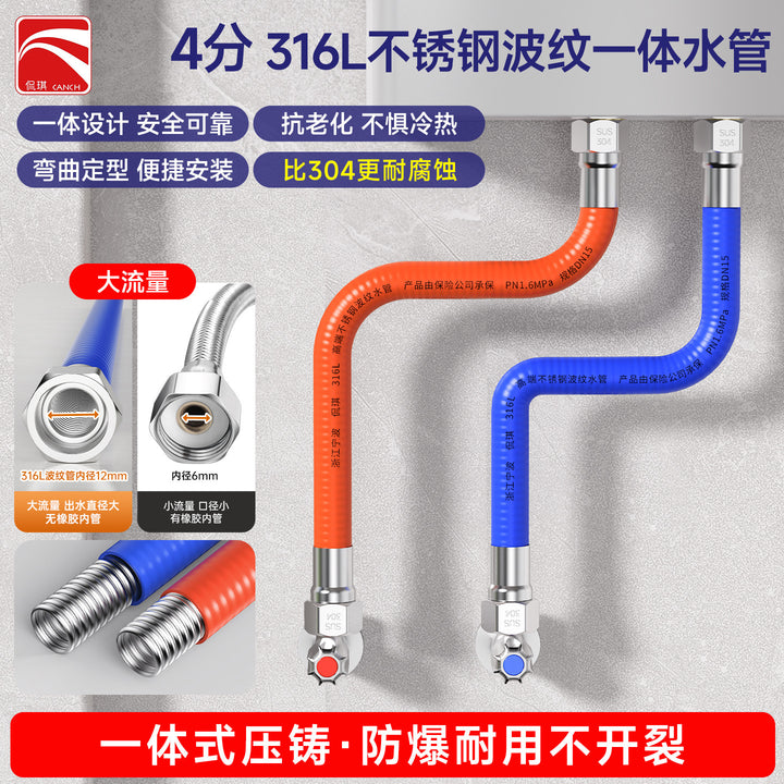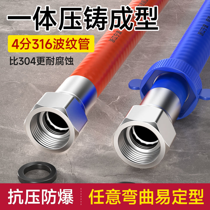 One piece of 316 stainless steel bellows, 4 water pipes, hoses, electric water heaters, connected to hot and cold water inlet and outlet hoses