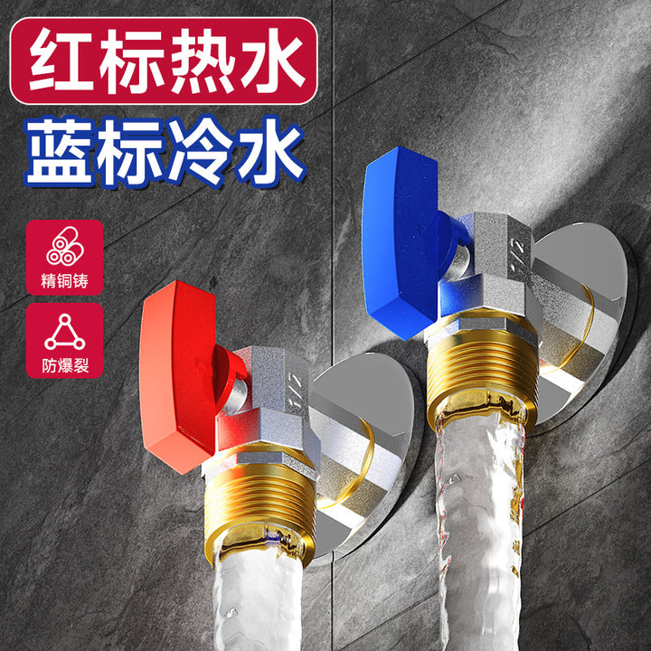 One piece of 4/6 points copper angle valve thickened hot and cold lengthened triangle valve universal 304 stainless steel toilet water heater