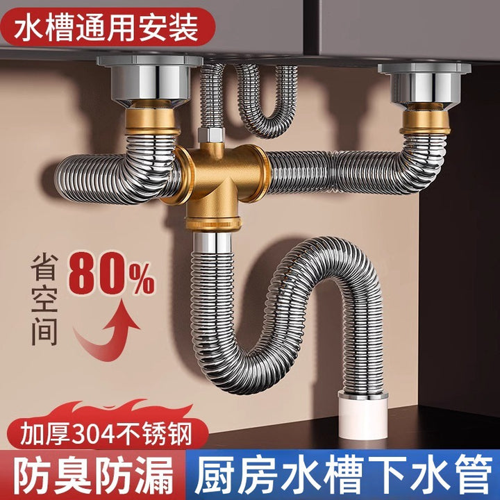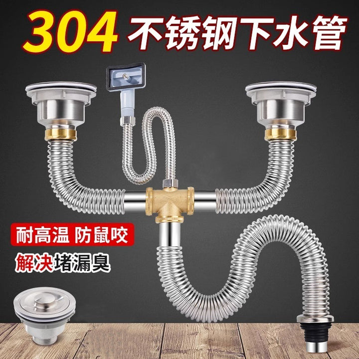 One piece of delivery, kitchen sink sewer pipe accessories, stainless steel double sink sink sink drain pipe sewer