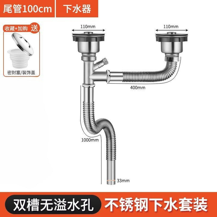 One piece of delivery, kitchen sink sewer pipe, sink drain pipe, stainless steel sewer, deodorant artifact