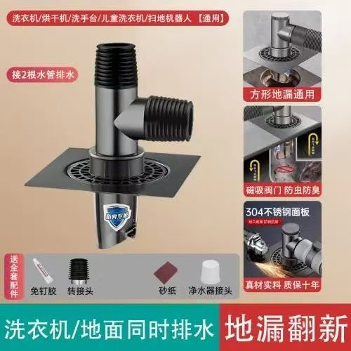 [Ordinary] Gun gray 304 stainless steel washing machine floor drain tee, [Extended model] 304 stainless steel washing machine fault floor drain tee |