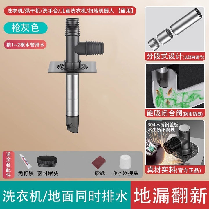[Ordinary] Gun gray 304 stainless steel washing machine floor drain tee, [Extended model] 304 stainless steel washing machine fault floor drain tee |
