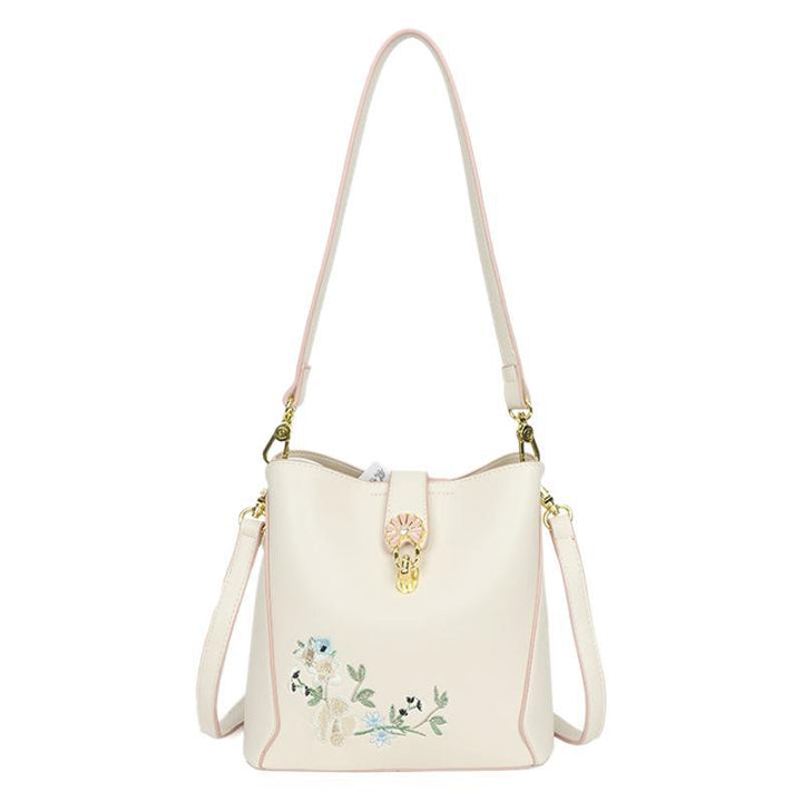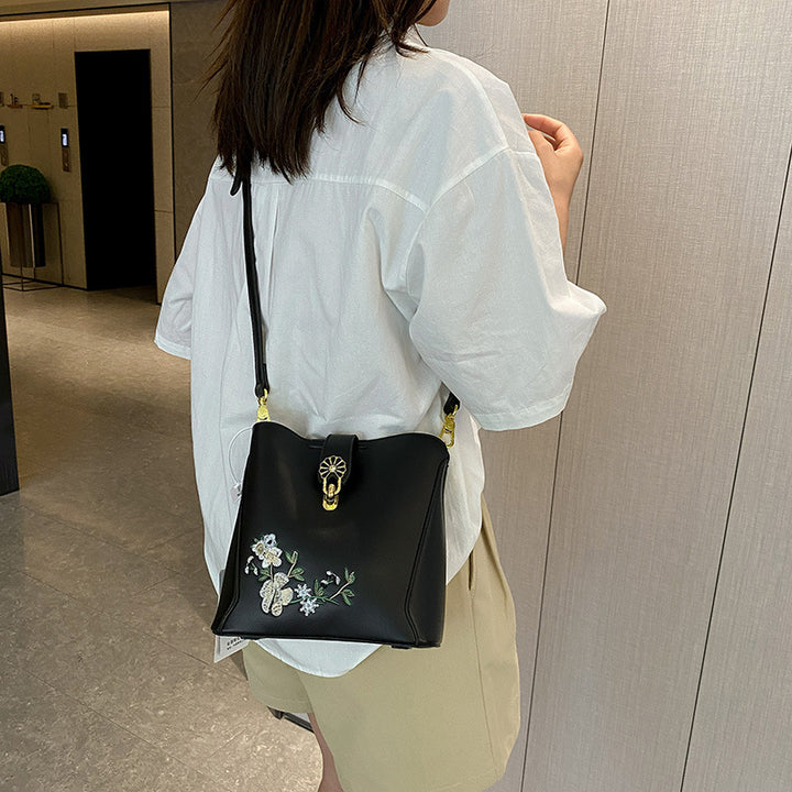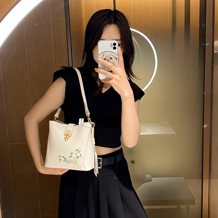One-shoulder messenger bag women's large-capacity bucket bag Chinese style embroidery contrasting colors casual commuting autumn new bag women