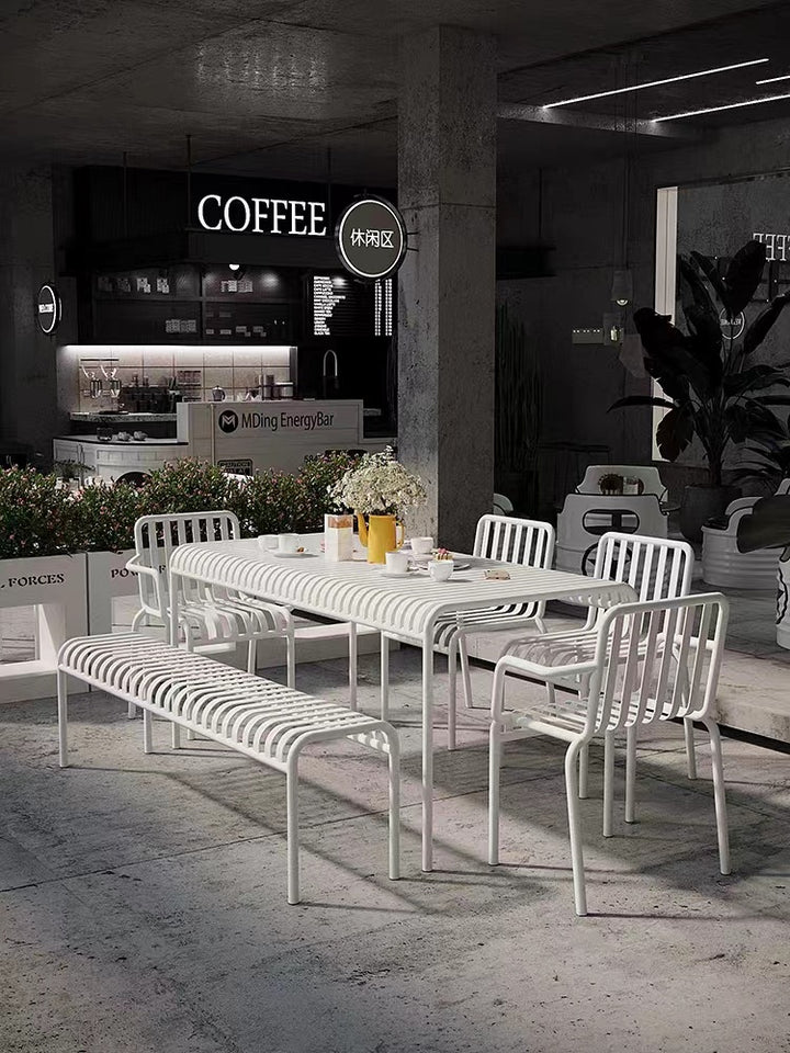 Outdoor courtyard tables and chairs, milk tea shop, coffee shop, industrial style creative leisure area arrangement, balcony, small tea table and c...