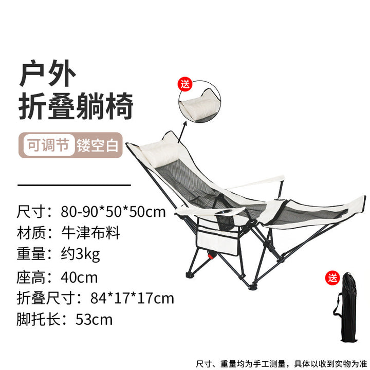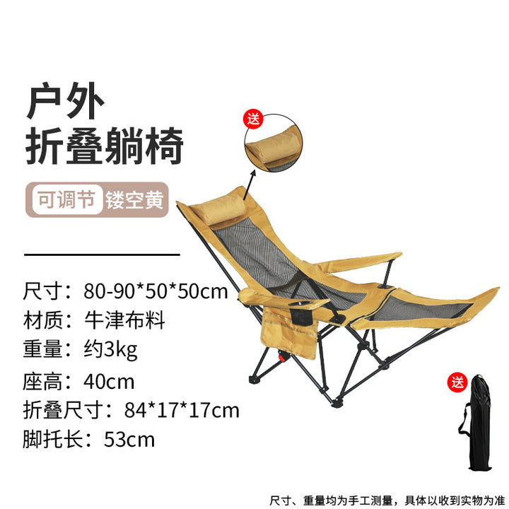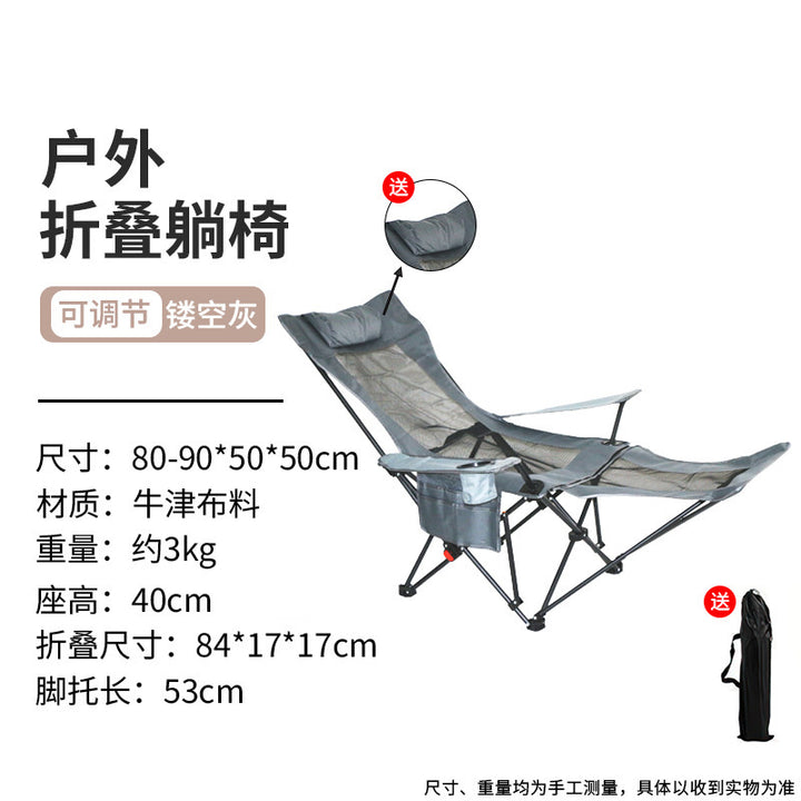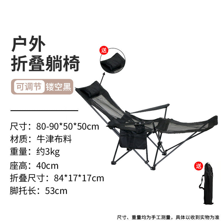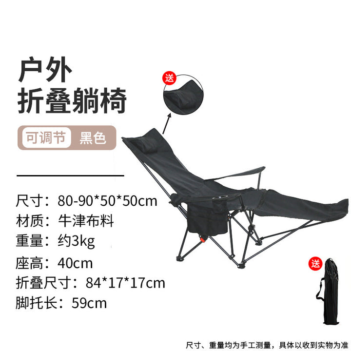 Outdoor folding lounge chair Portable beach camping chair Sitting and reclining Free adjustment lunch break chair Moon chair