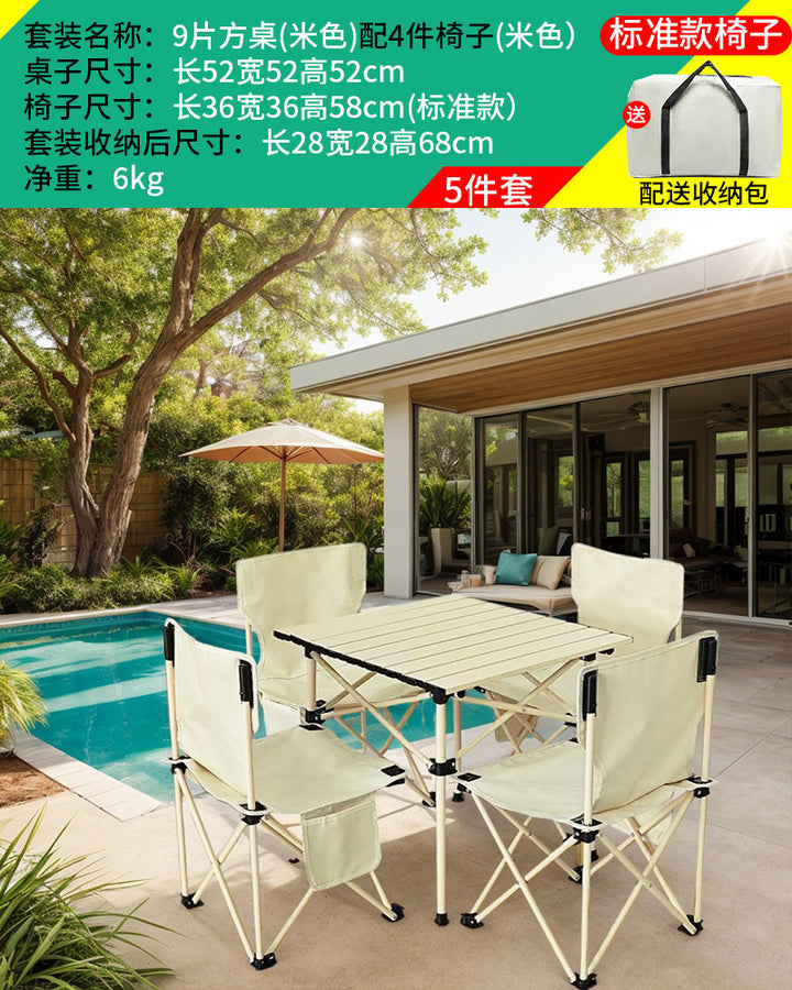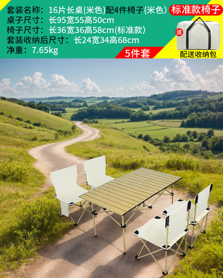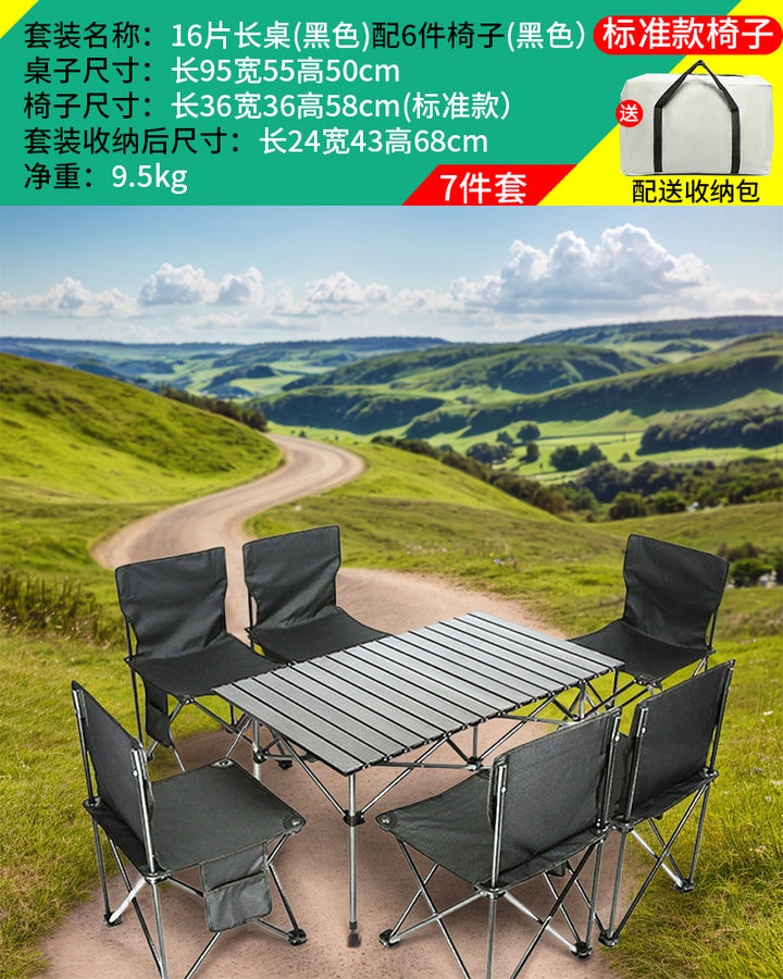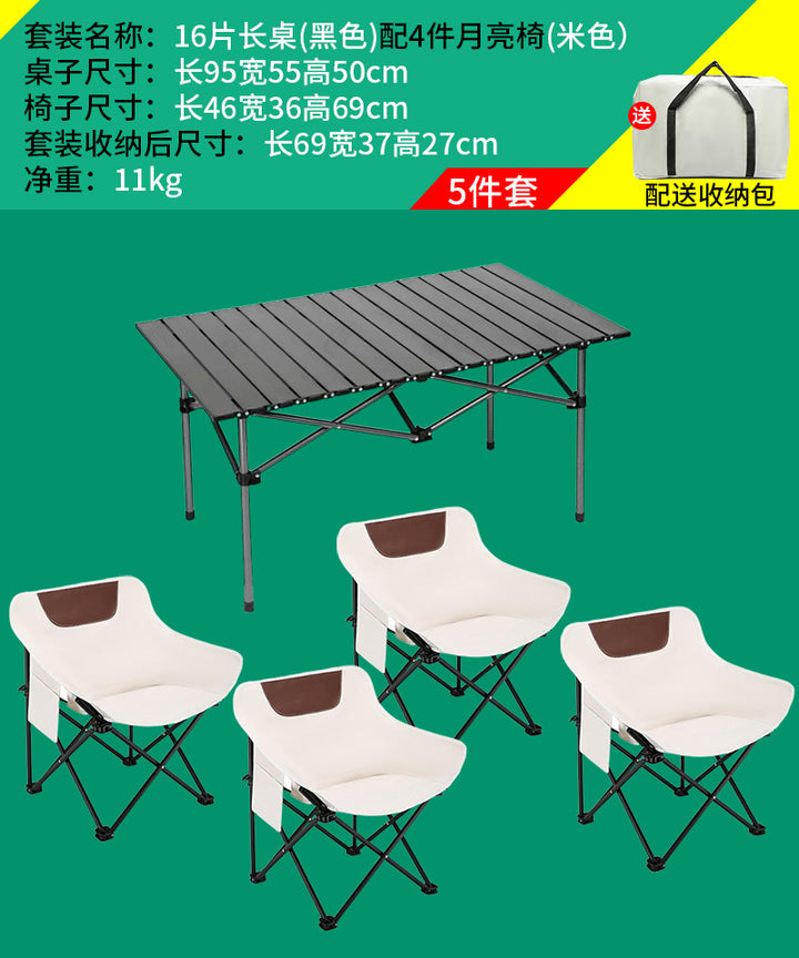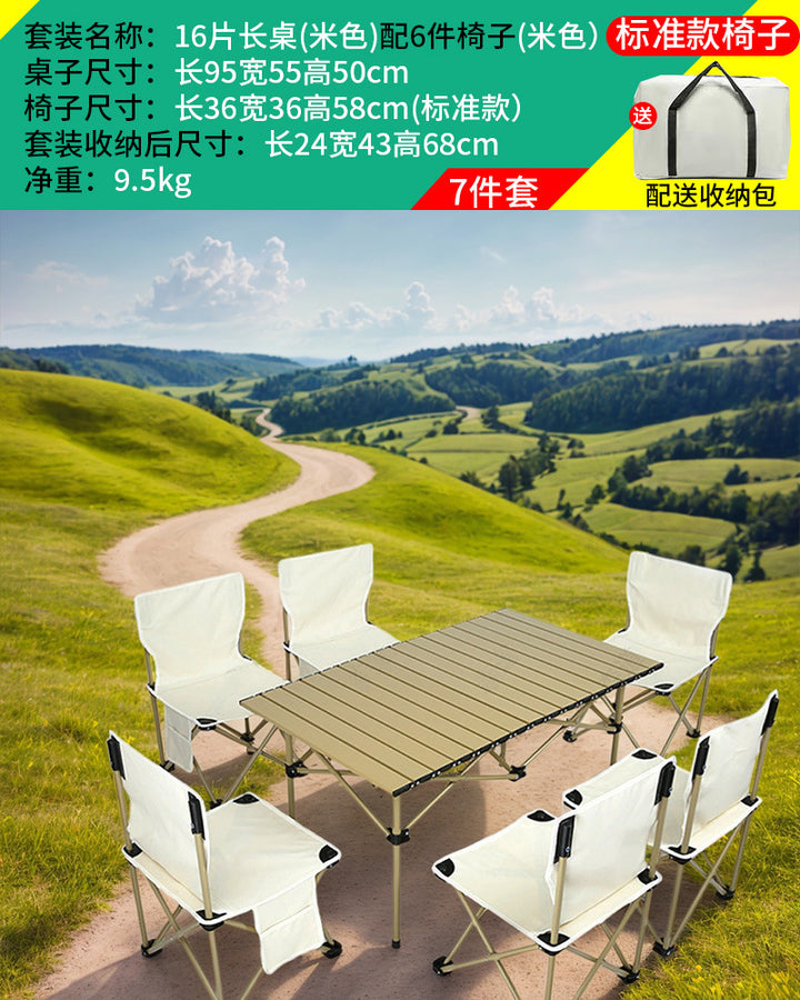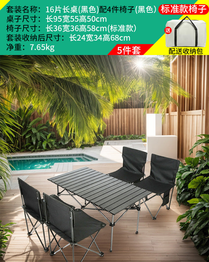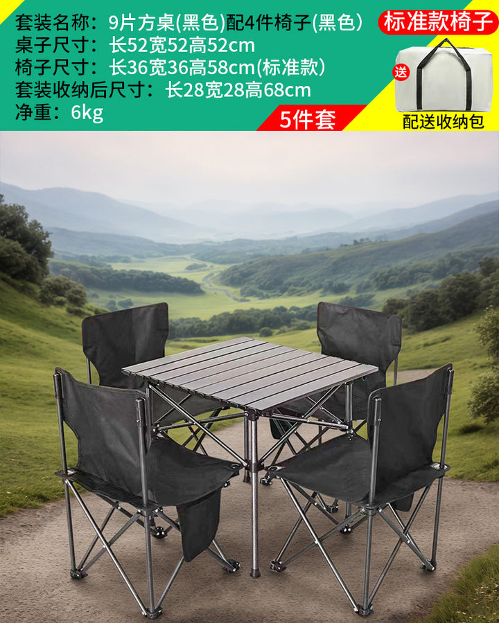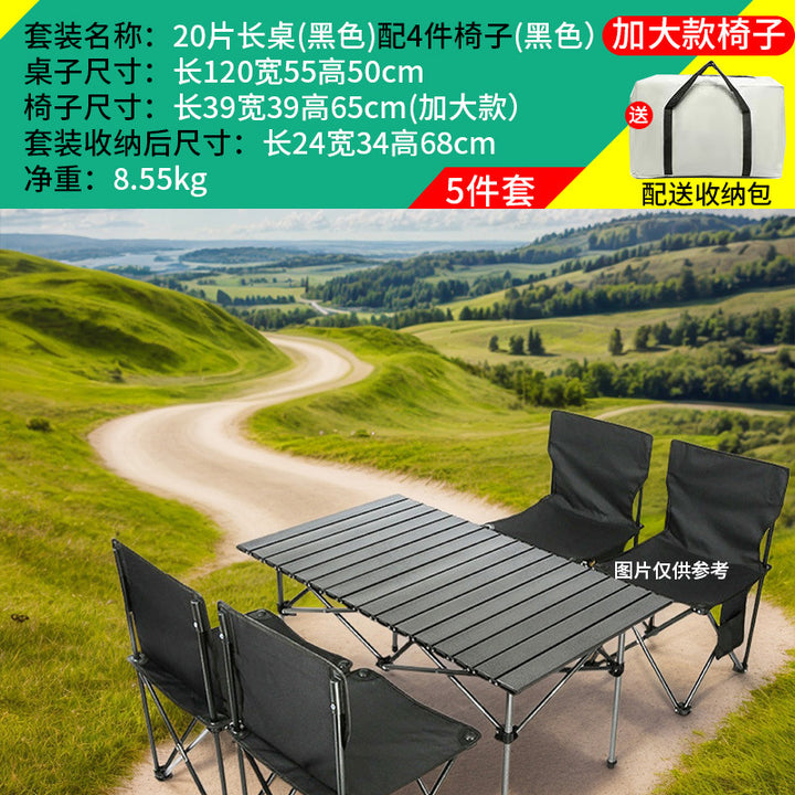 Outdoor folding table and chair set 4 to 6 people portable carbon alloy picnic barbecue campi...