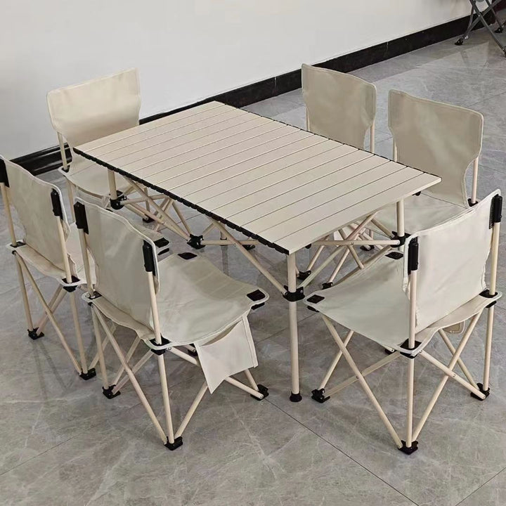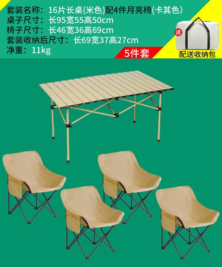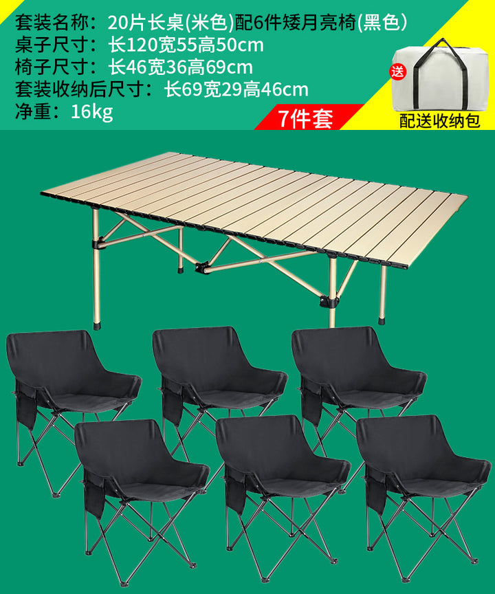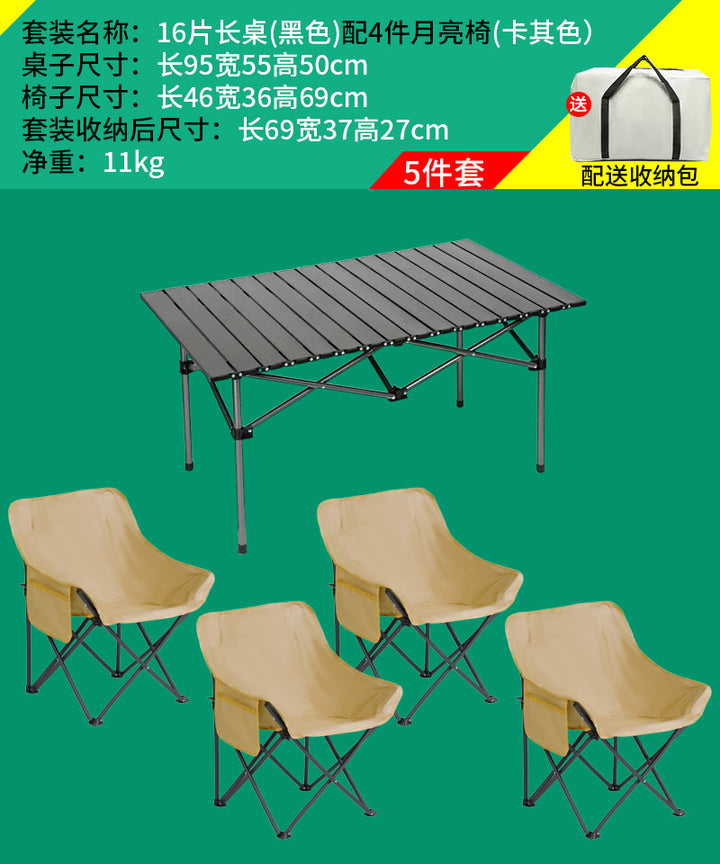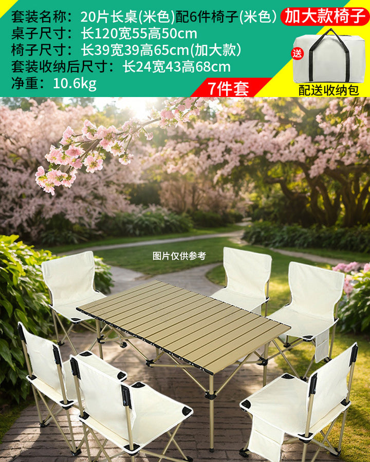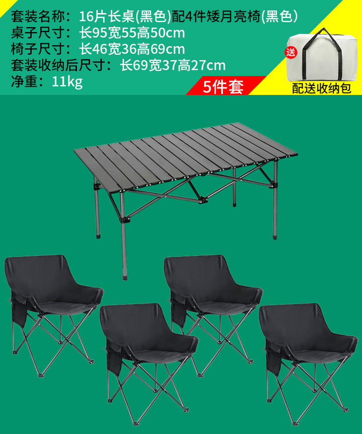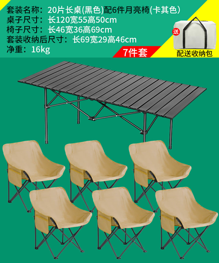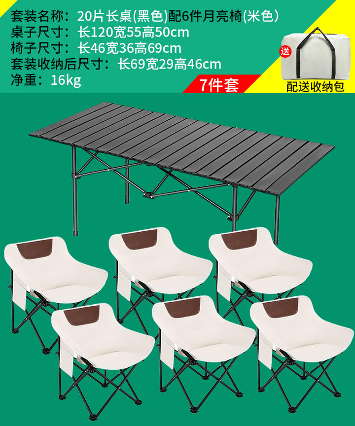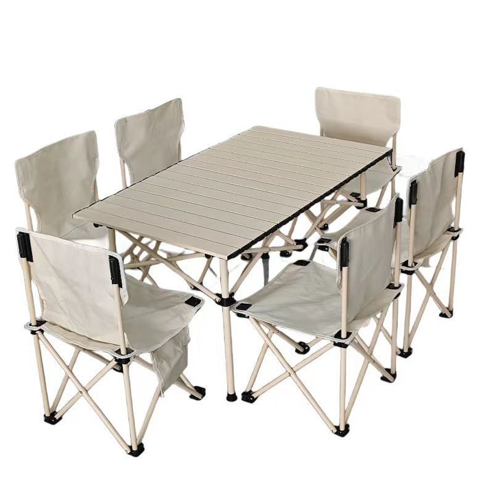 Outdoor folding table and chair set 4 to 6 people portable carbon alloy picnic barbecue campi...