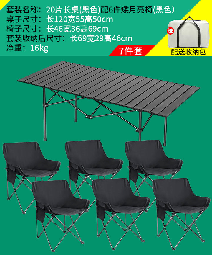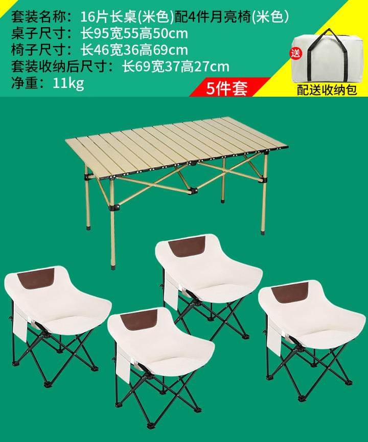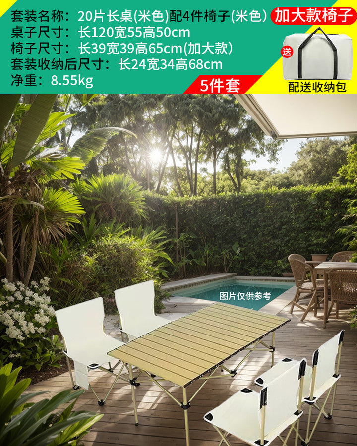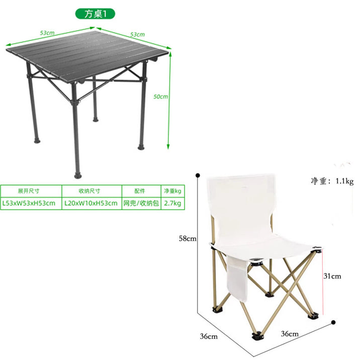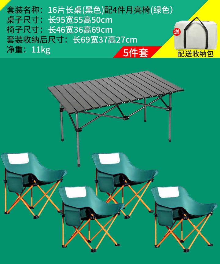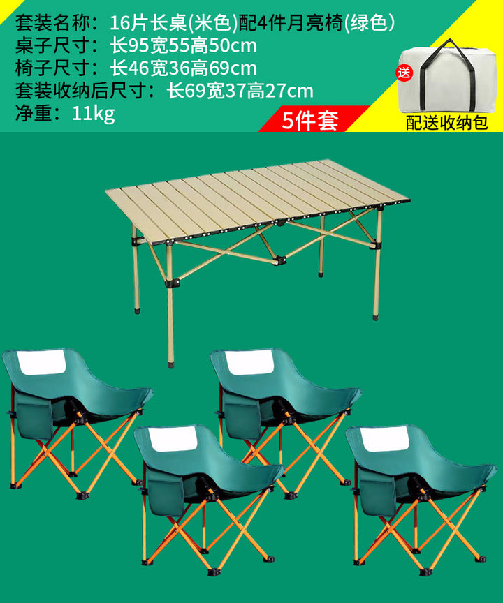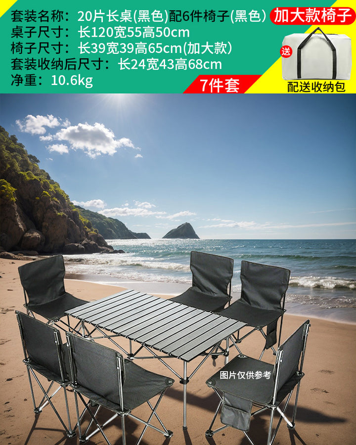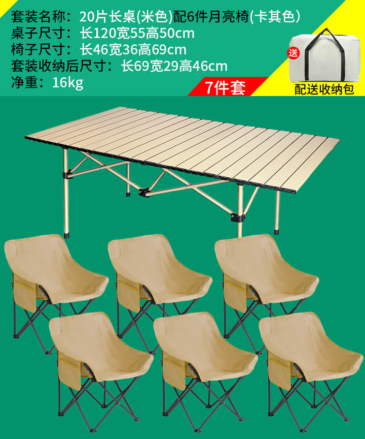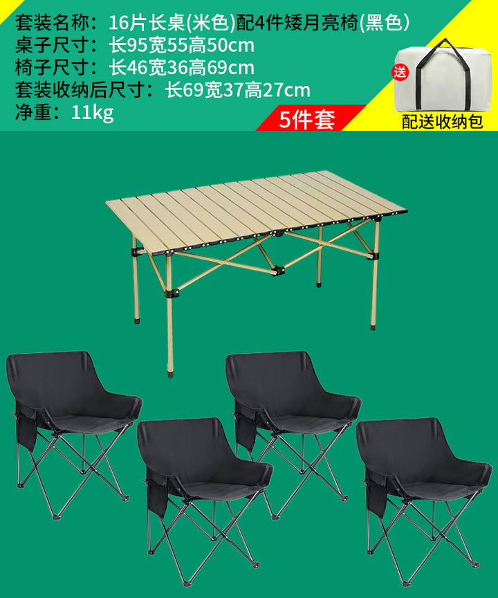 Outdoor folding table and chair set 4 to 6 people portable carbon alloy picnic barbecue campi...