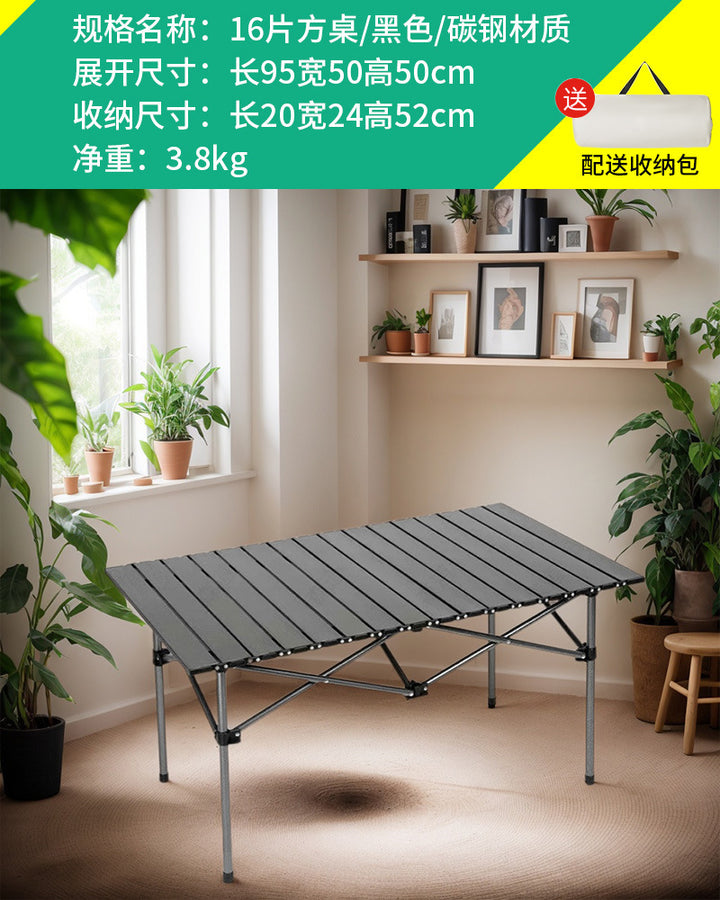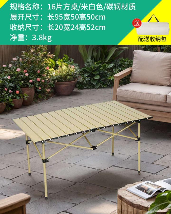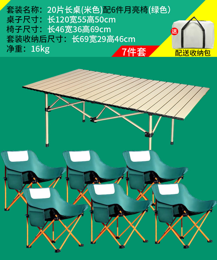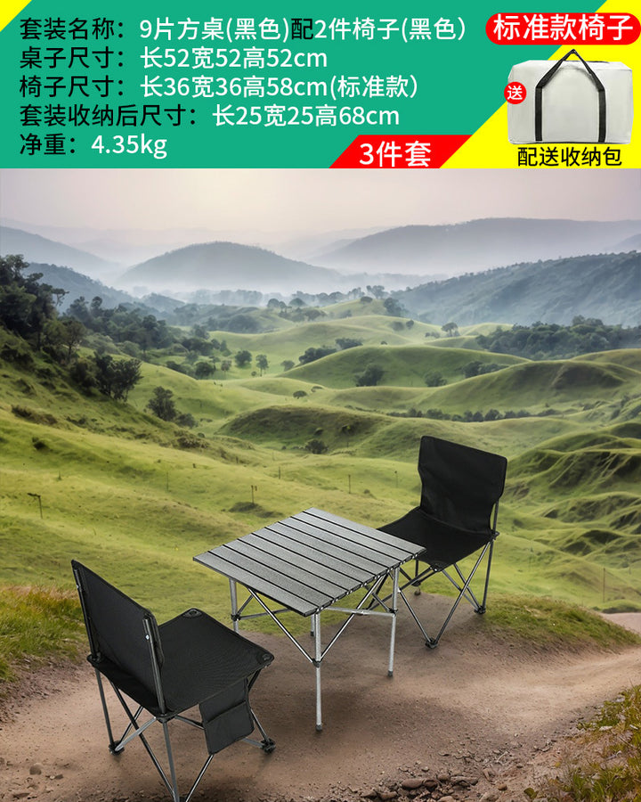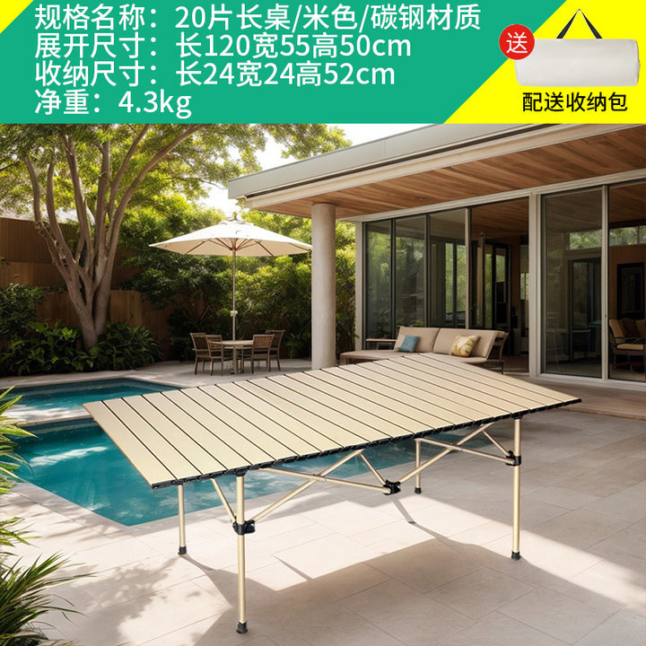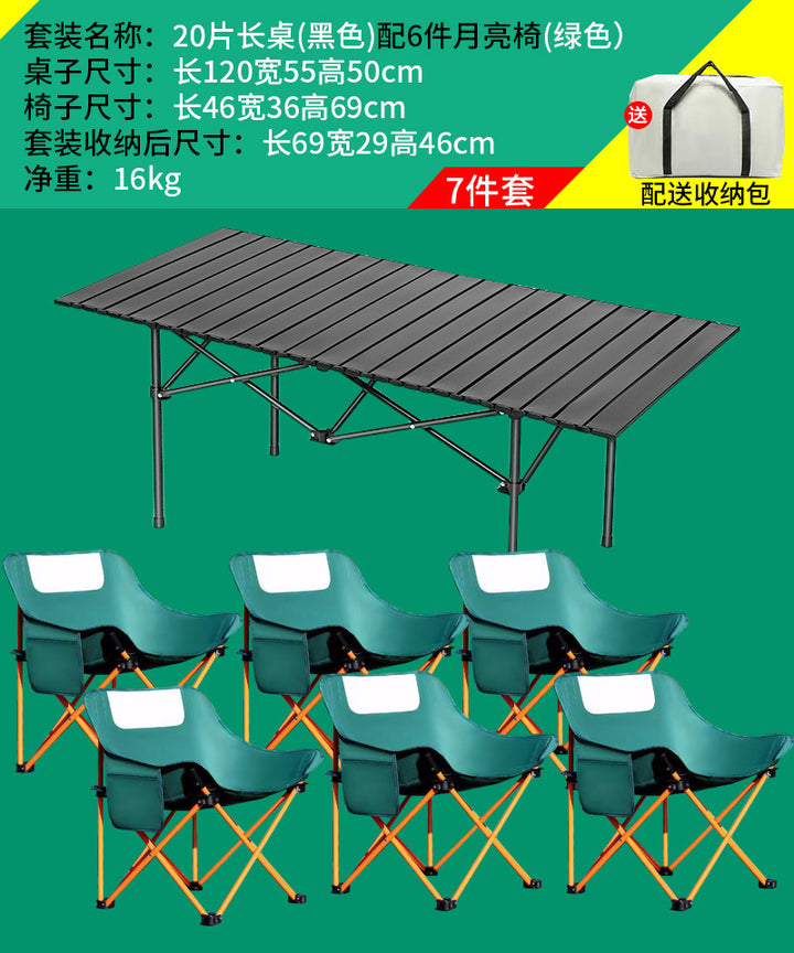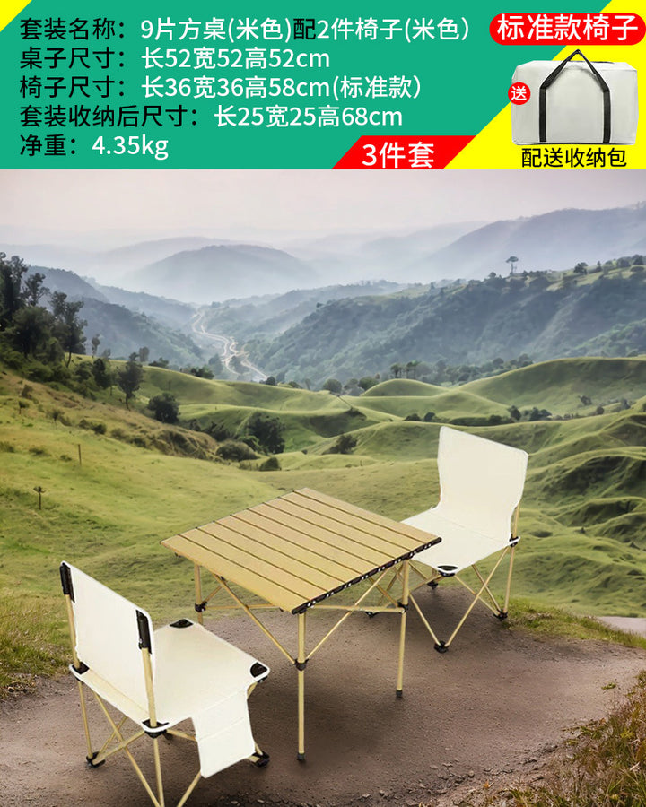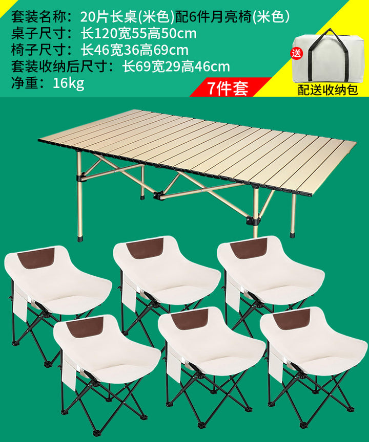 Outdoor folding table and chair set 4 to 6 people portable carbon alloy picnic barbecue campi...