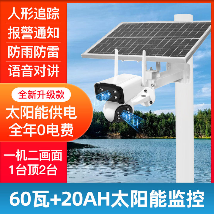 Outdoor monitor remote mobile phone 360 degrees no power can night vision high definition solar camera monitoring dual screen