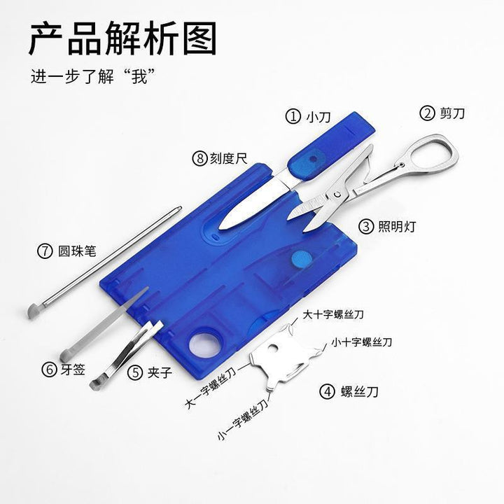 Outdoor multifunctional emergency card combination set 8-piece set scissors screwdriver magnifying glass letter opener tool
