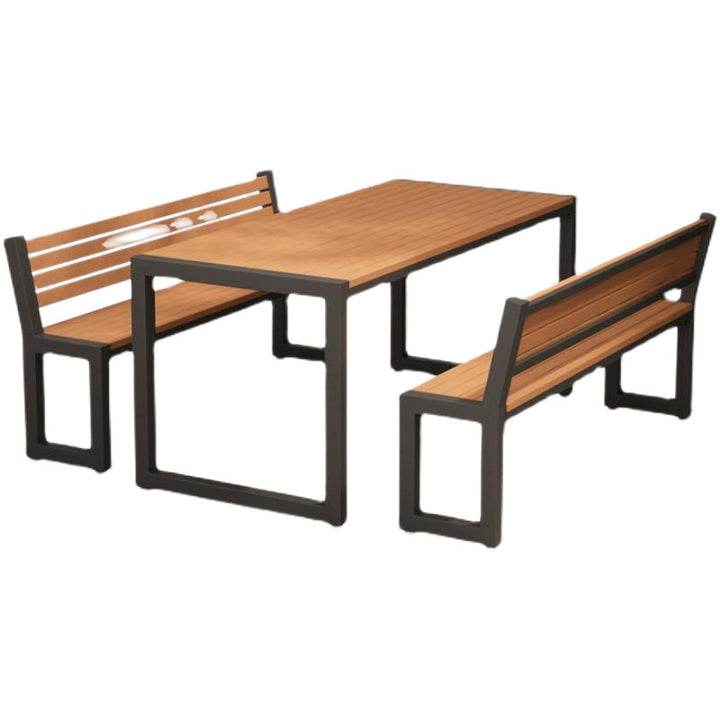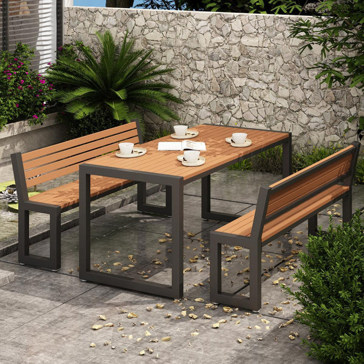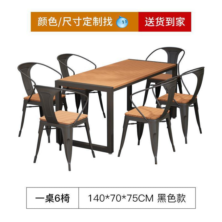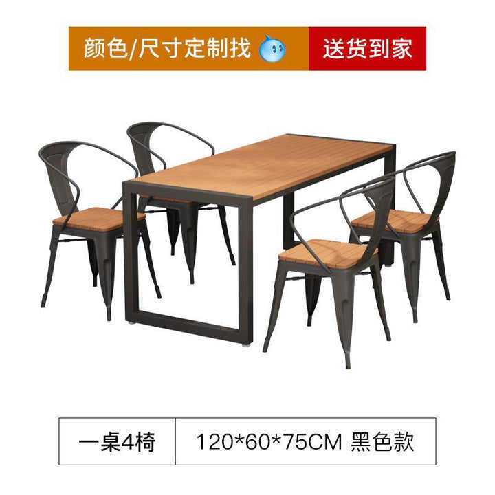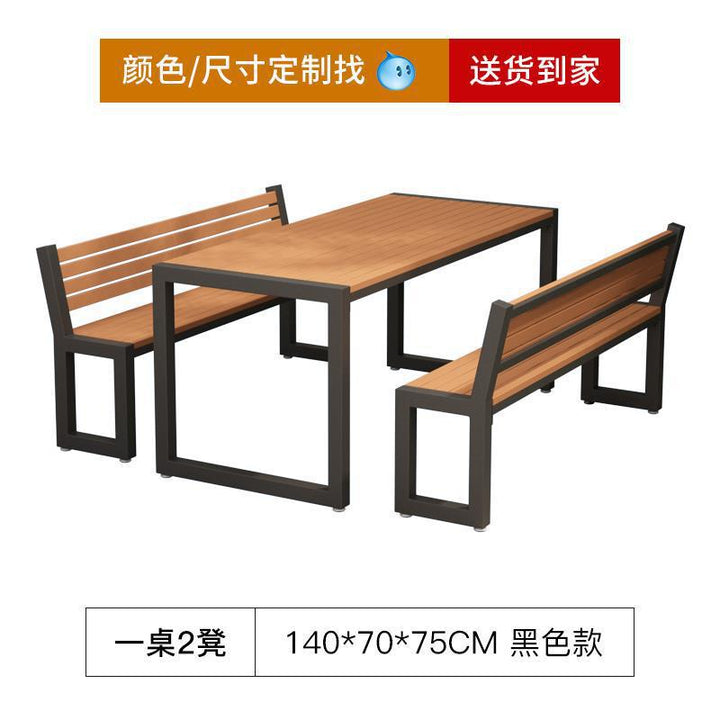 Outdoor plastic wood tables and chairs courtyard balcony garden leisure coffee shop open-air outdoor waterproof sunscreen dining table and chair co...