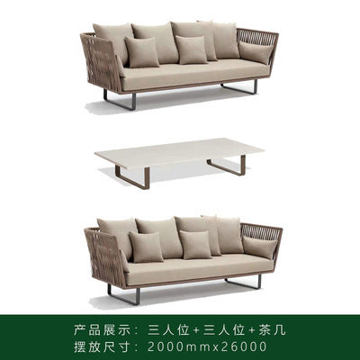 Outdoor sofa rattan sofa chair triple combination outdoor leisure waterproof sunscreen rattan rattan art courtyard terrace furniture