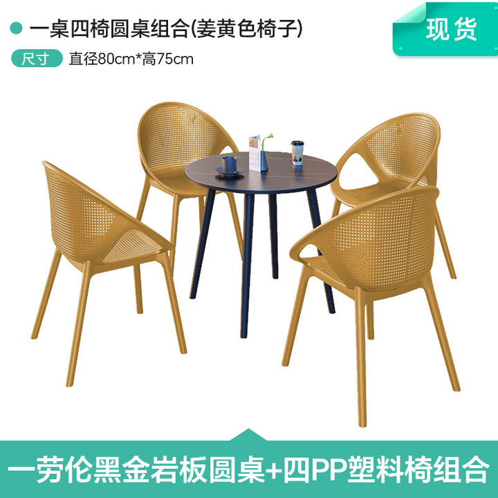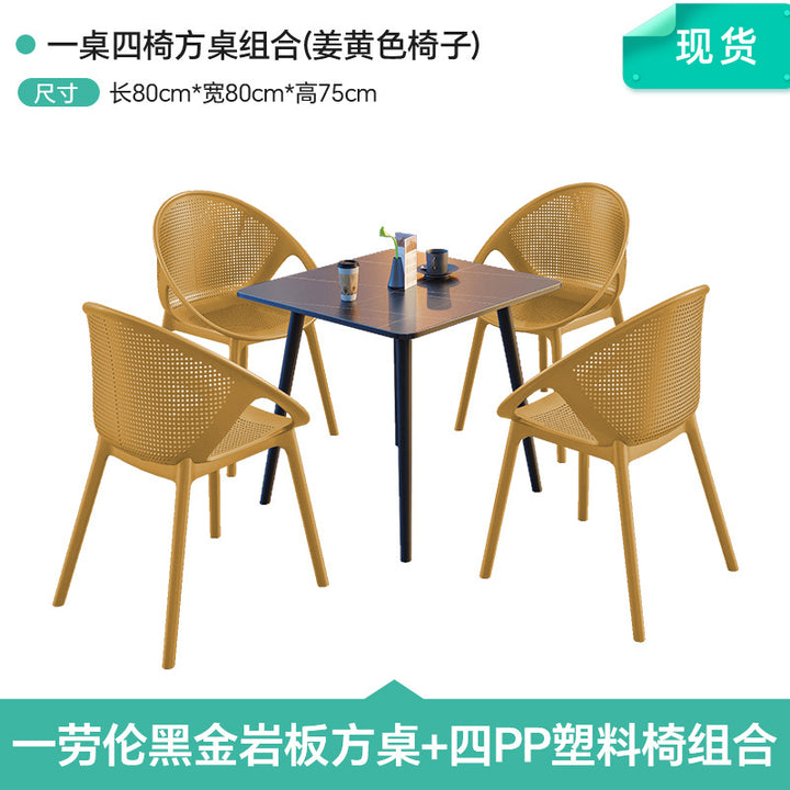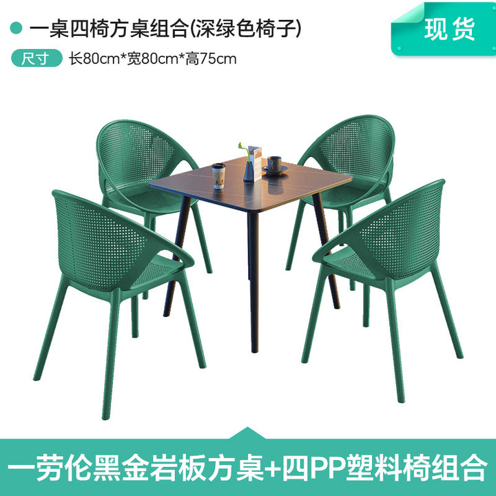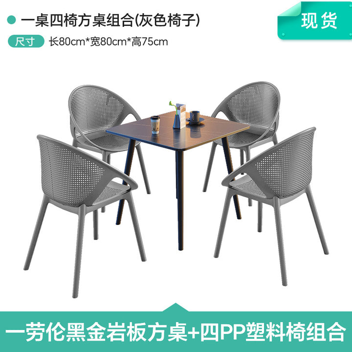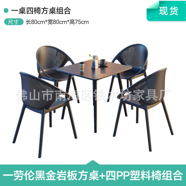 Outdoor table and chair combination milk tea shop dining table courtyard open-air terrace balcony outdoor black simple table