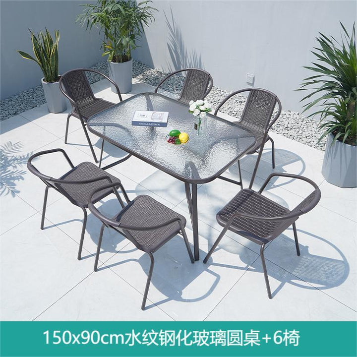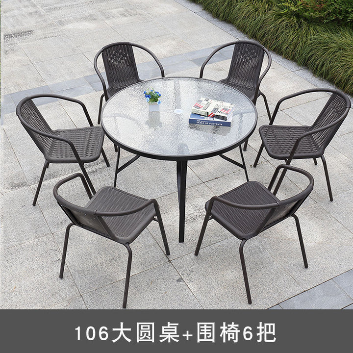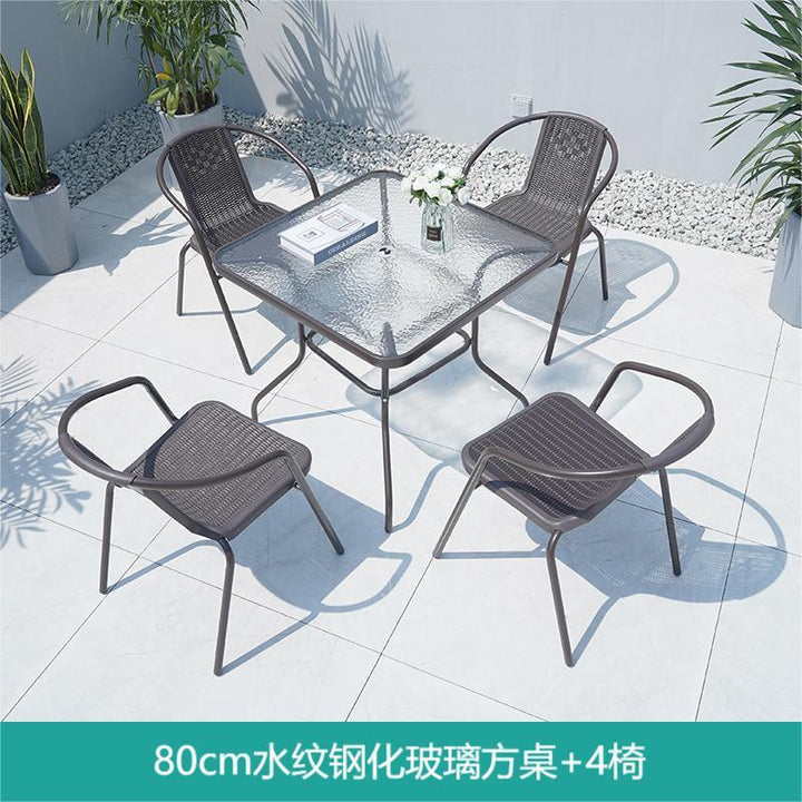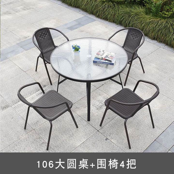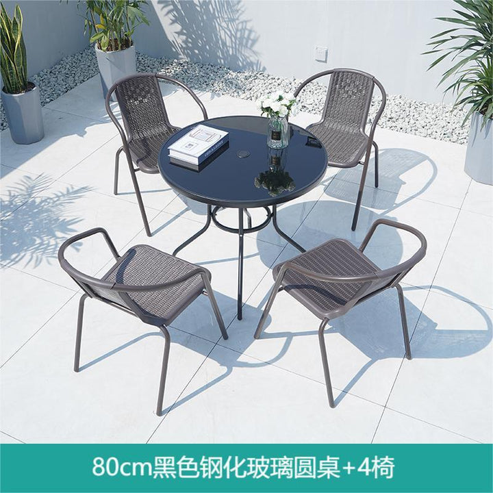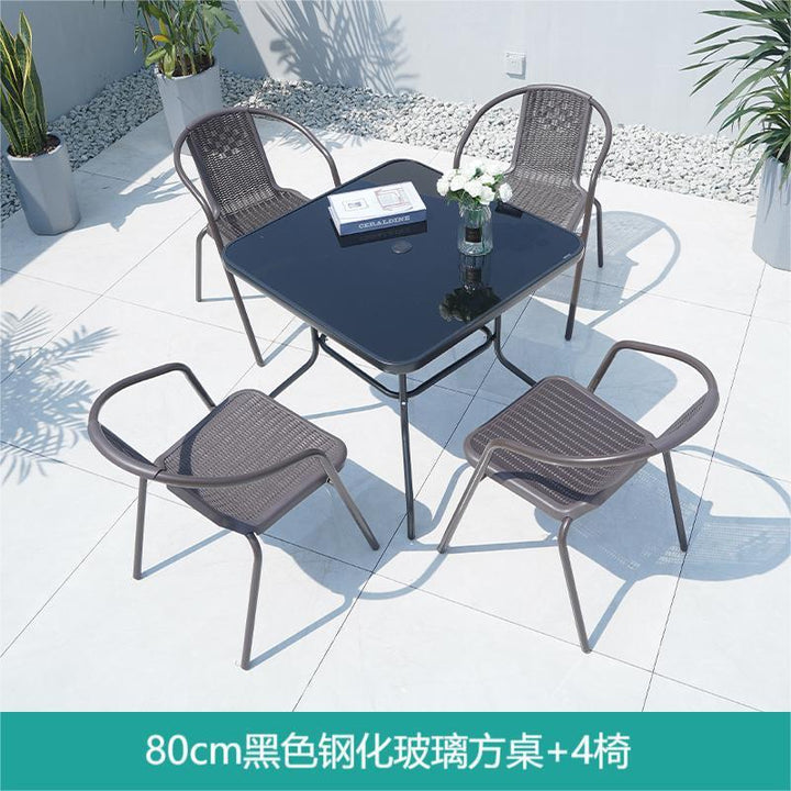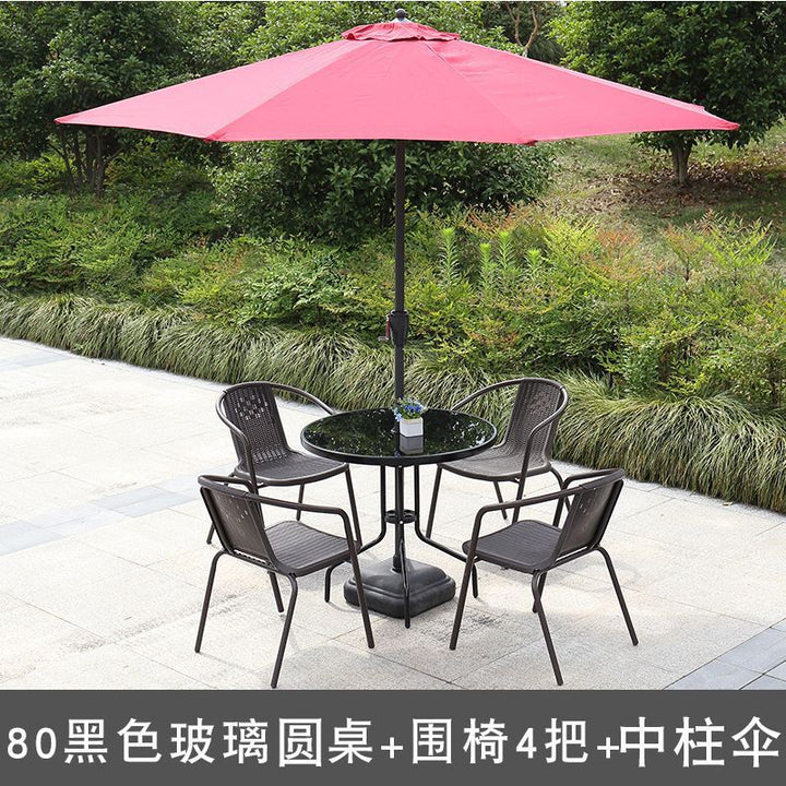 Outdoor tables and chairs rattan chairs with umbrellas five-piece set courtyard balcony back chairs outdoor camping tea leisure table and chair com...
