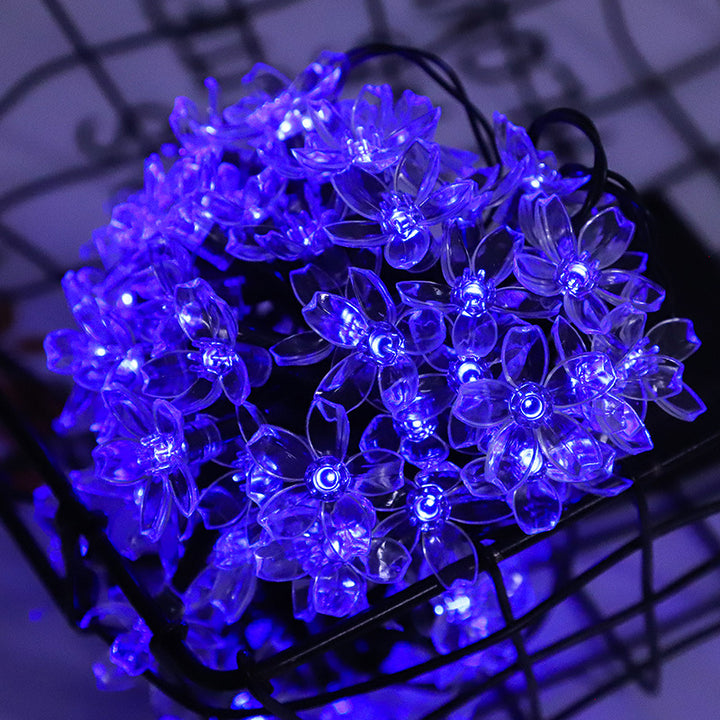 Outdoor waterproof LED solar light string cherry blossom flower shape flashing peach blossom ...