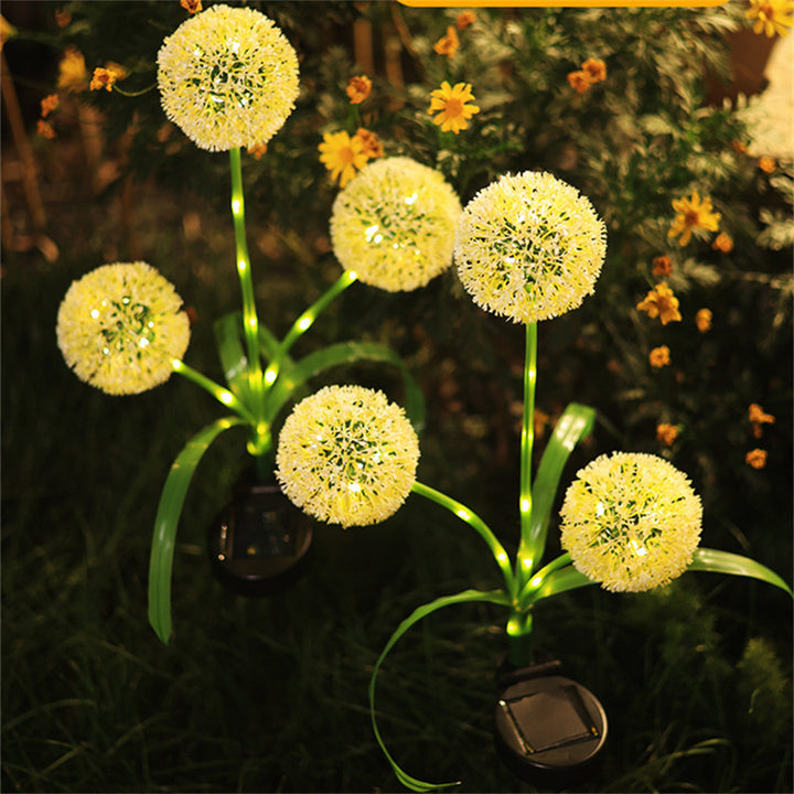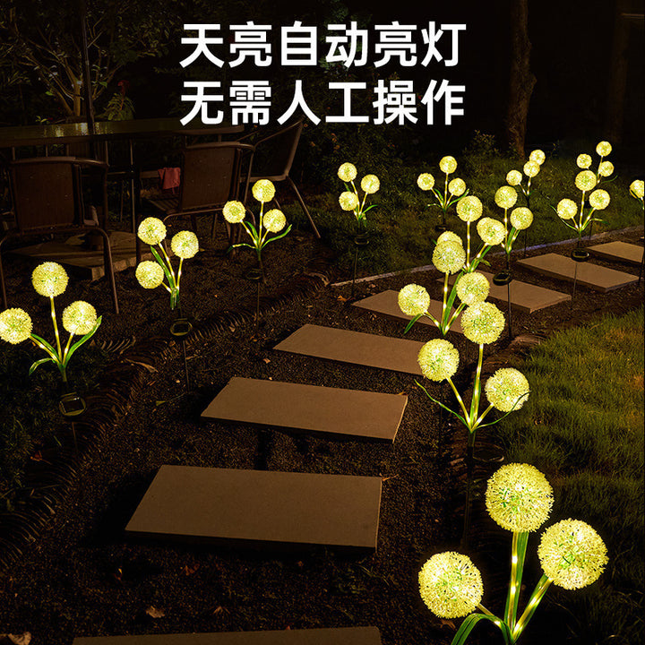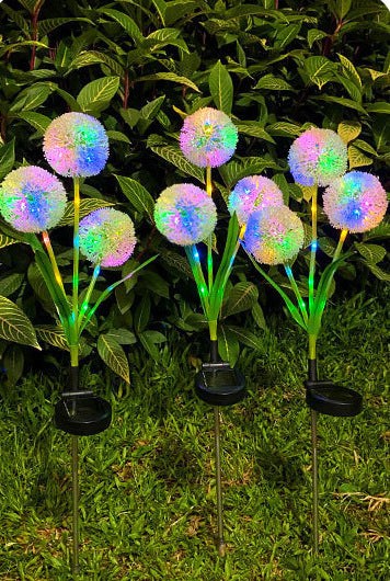 Outdoor waterproof solar energy three-head scallion ball flower arrangement three-head dandelion floor plug light LED simulated flower lawn light