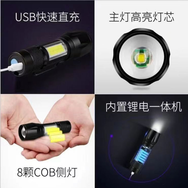 Plastic [fixed focus COB side light] + charging cable, Plastic [zoom COB side light] + charging cable, Aluminum alloy [zoom COB side light + clip] + charging cable, ιειγεη¦COBδΎ§η―γ+ε η΅ηΊΏ, ιειγεη¦COBδΎ§η―+ζεΎγ+ε η΅ηΊΏ |